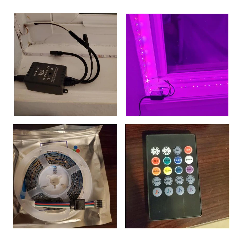 Пульт дистанционного управления:20 клавиш дистанционного управления, 2а/5А адаптер питания и разъемы. Другие аксессуары не требуются. С 20 кнопками дистанционного управления, вы можете просто изменить яркость, цвета и несколько режимов сцены.