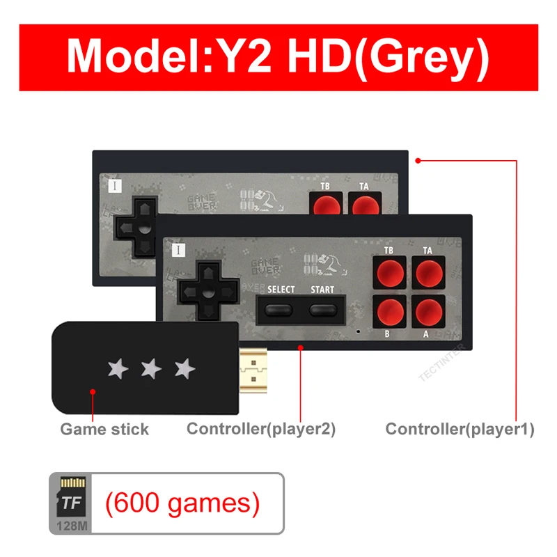 Y2-HD (черный) Встроенные 818 классические игры, Y2-HD (серый) Встроенные 600 классические игры