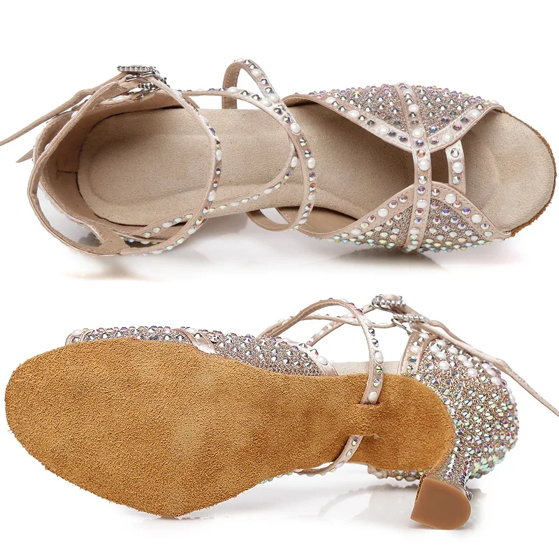 Танцевальная обувь стразы обувь для бальных танцев для девочек джаз кроссовки для девушек обувь для латиноамериканских танцев Танго танцевальная обувь JuseDanc