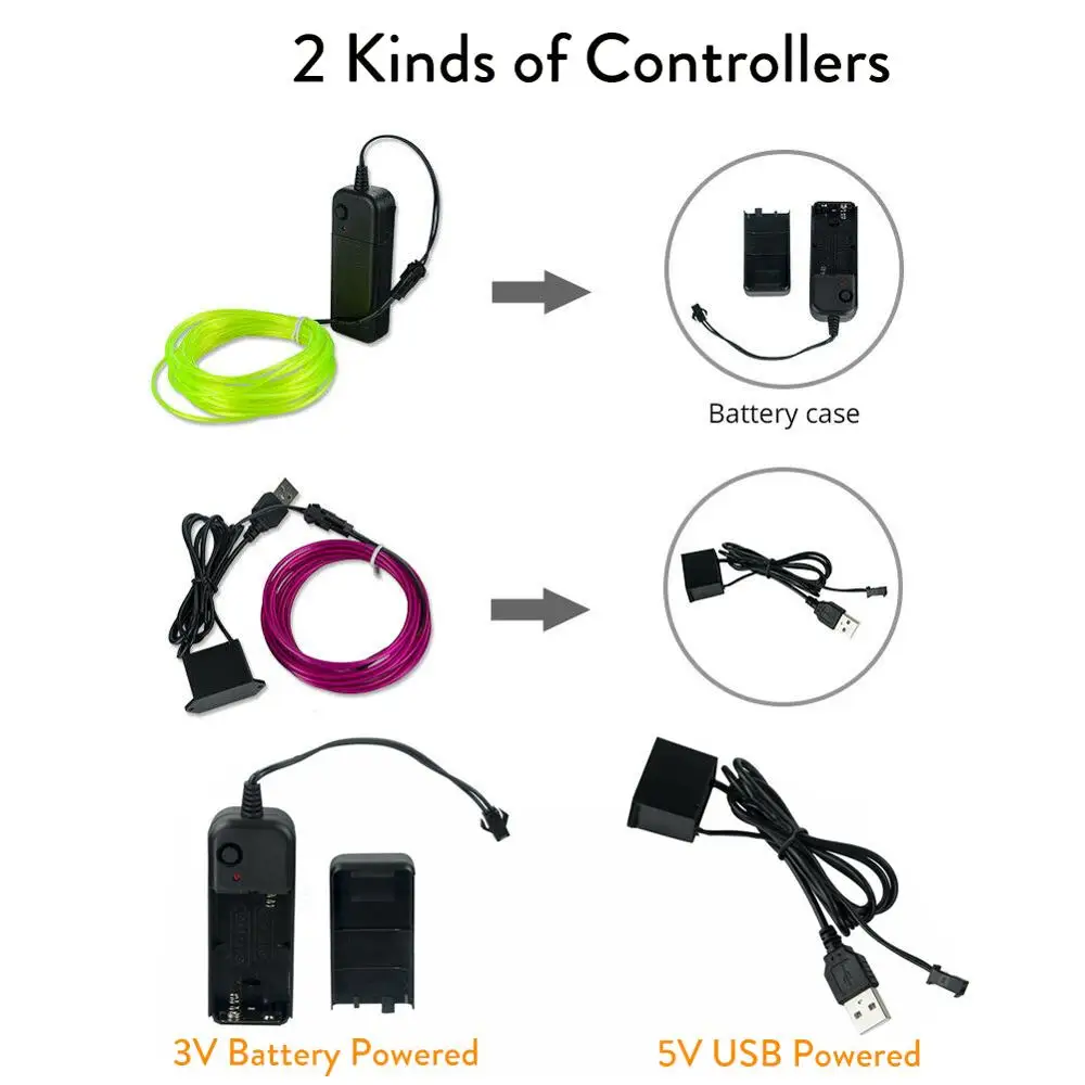 DIY СВЕТОДИОДНЫЙ Неон EL провода 5 м светильник строка веревка кабель с 3V 5V USB Батарея контроллер питания для автомобильного вечерние Клубные Танцы Декор