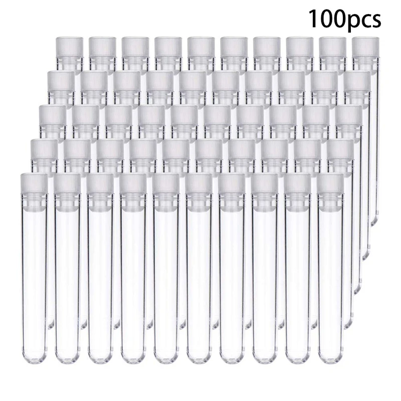 100 шт. прозрачные пластиковые пробирки с белыми винтовыми крышками