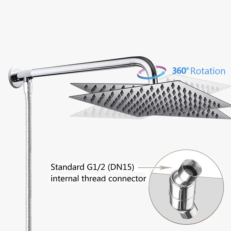 Душевая насадка для ванной, хромированная, 81012 дюйма, ультратонкая Душевая насадка, латунь, 15 дюймов, шланг из нержавеющей стали 150 см, настенное крепление, дождевая насадка для душа