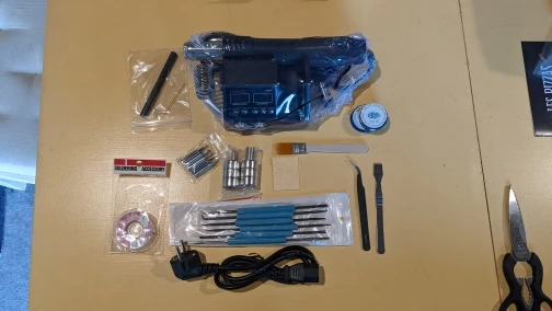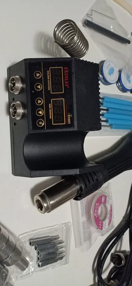 Быстрая доставка. Хорошая паяльная станция. Такая же базовая, но хорошо работает. Хорошо: быстро нагревается. Понизьте температуру утюга через несколько минут после неподвижности. Длительное нажатие увеличивает температуру 10 +, одно нажатие 1 +. Выключите пистолет горячего воздуха через несколько секунд на подставке. Не так хорошо: Нет настенного крепления, как у аналогичной модели, нет температурной памяти. В общем, это очень рекомендуется.