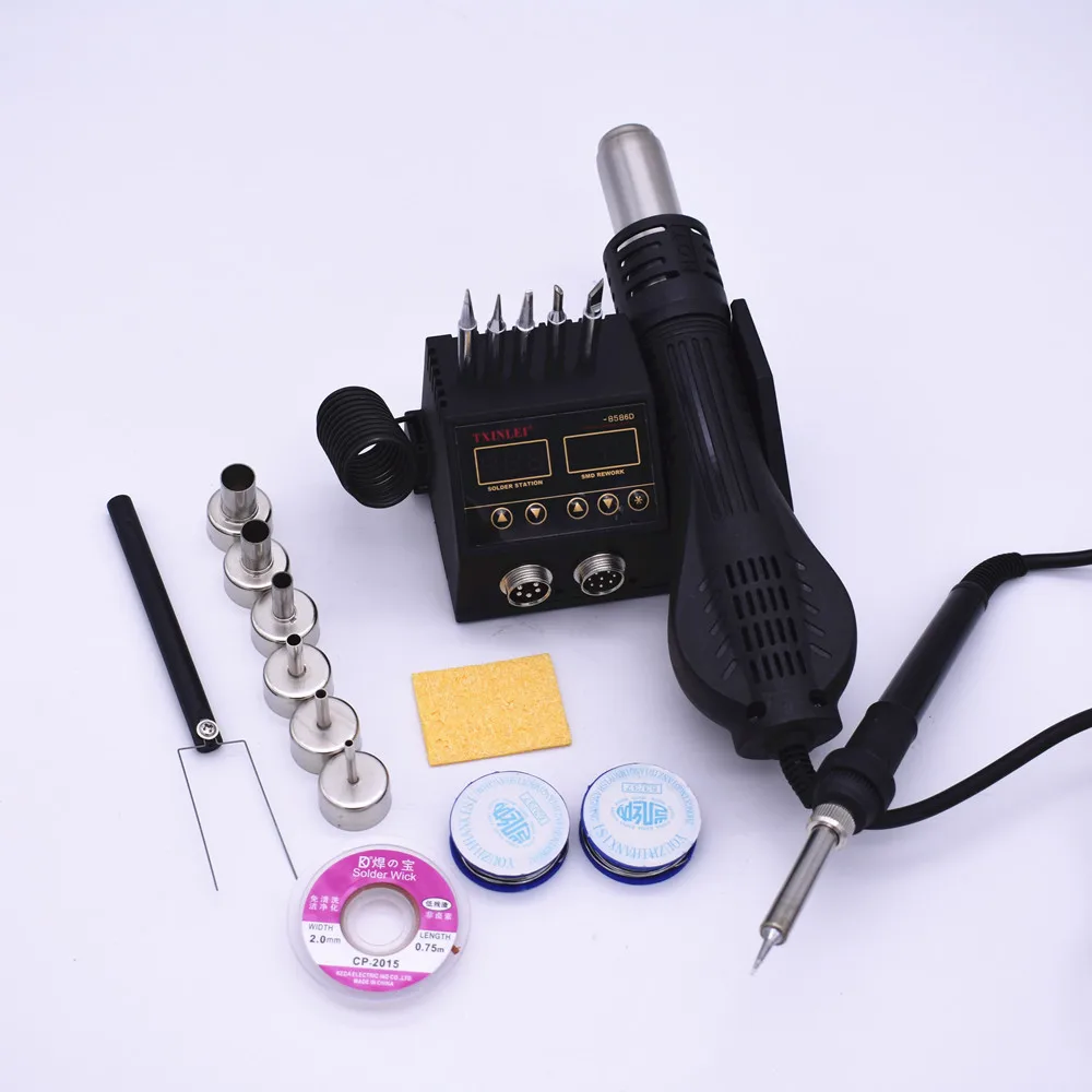 Паяльная станция 2 в 1 с термофеном для починки печатных плат, микросхем
