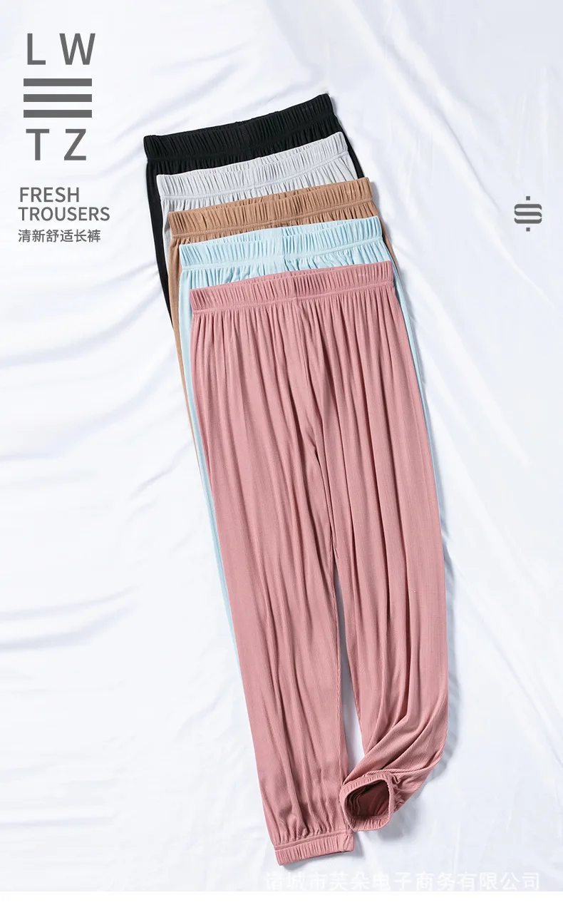 Повседневные весенние осенние лаунж брюки свободные домашние брюки из модала и хлопка пижамы Женская одежда для сна Брюки женские пижамные штаны