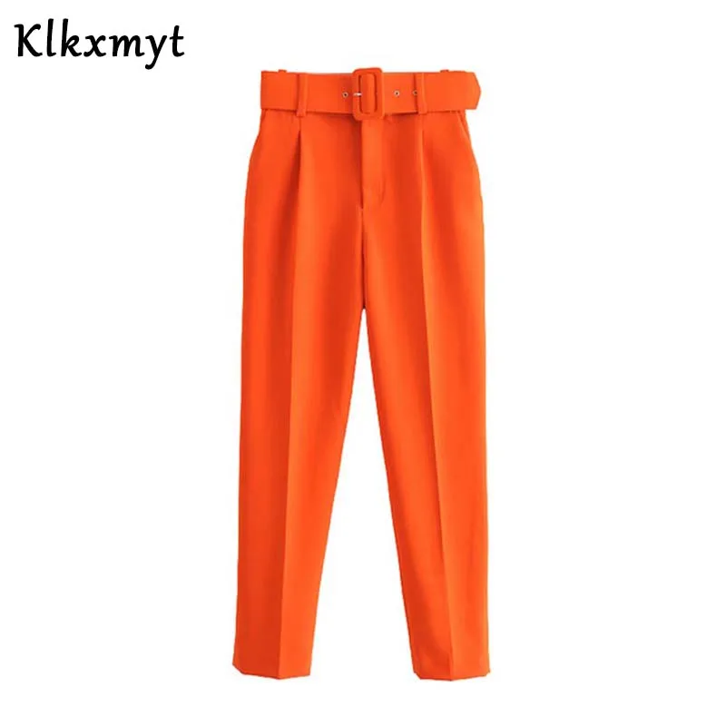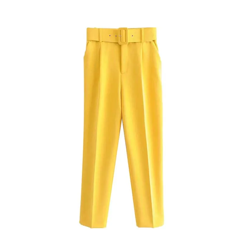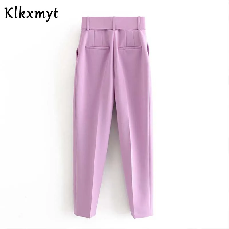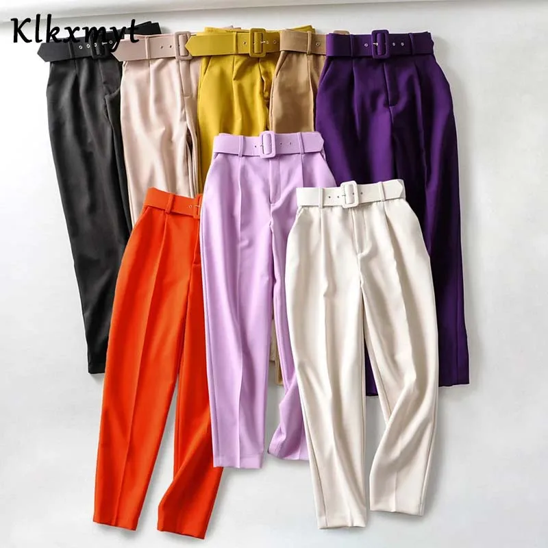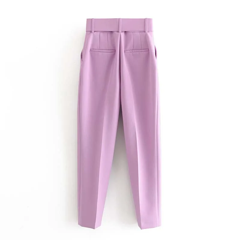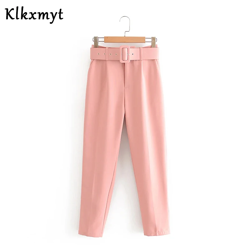 2020 новые женские повседневные розовые брюки-Капри с поясом, высокая талия, карманы на молнии, шикарные офисные женские брюки, уличные женские брюки