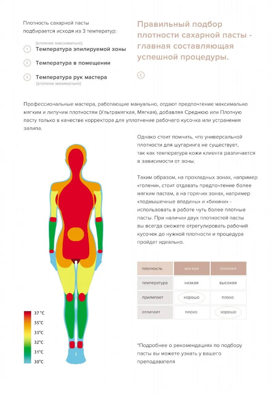 Предназначена для работы мануальной и шпательной техниками на любых участках тела, даже на самых нежных и чувствительных (лицо, зона бикини). В зависимости от температуры рук мастера, тела клиента и воздуха в помещении может использоваться как моноплотность или смешиваться с другими пастами линейки для достижения оптимальной консистенции. Состав по INCI: Invert sugar, Aqua.