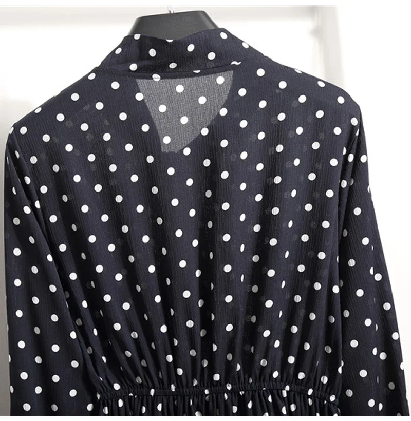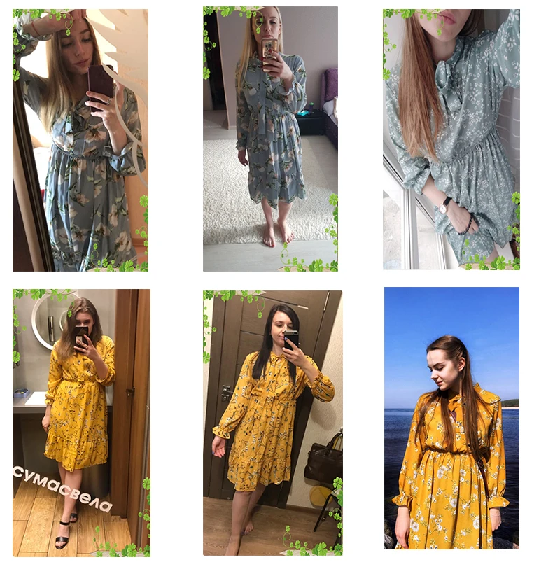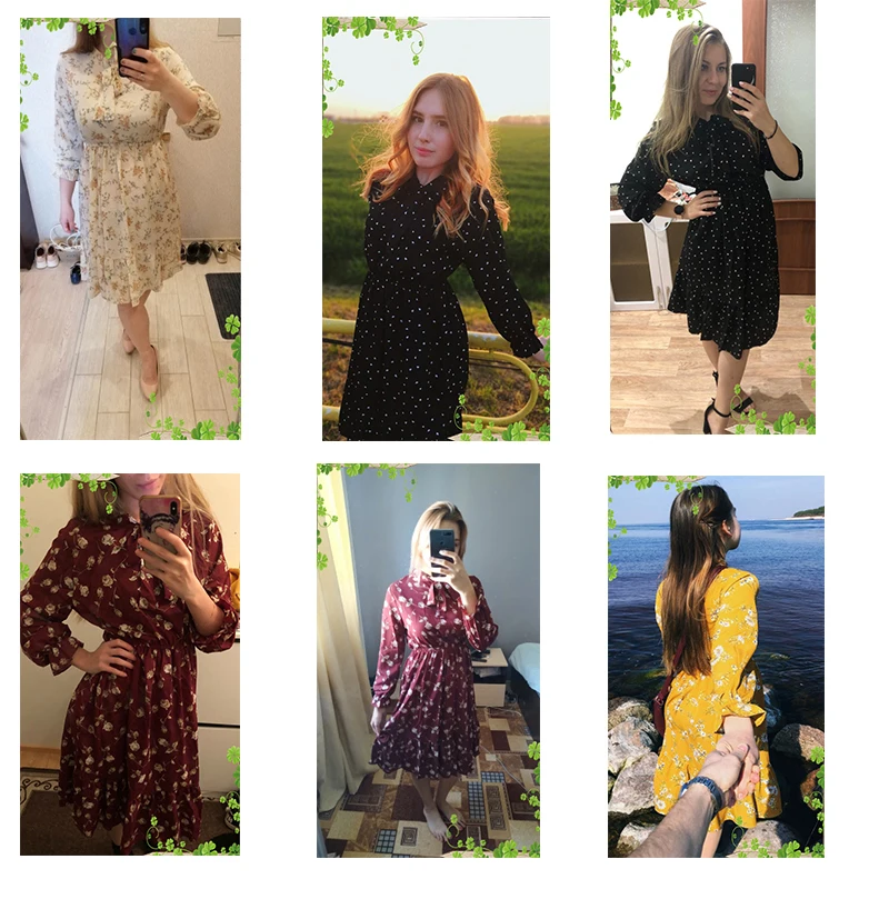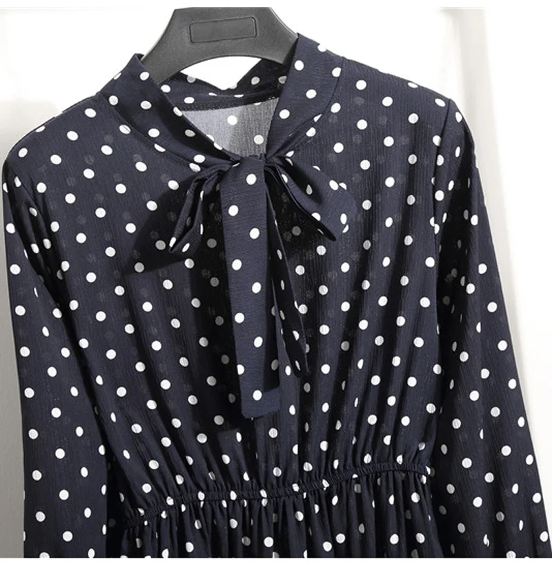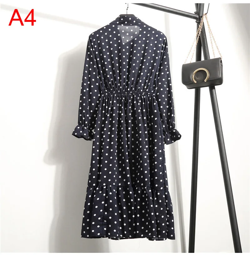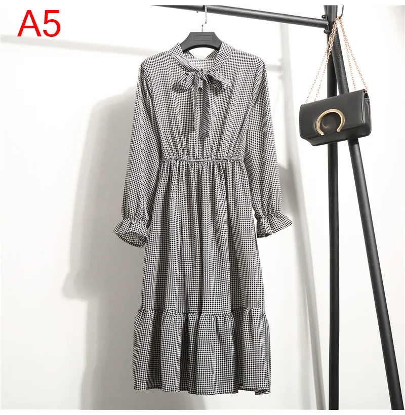 Женское повседневное осеннее платье, женское винтажное шифоновое платье-рубашка в Корейском стиле с цветочным принтом, летнее платье миди с длинным рукавом и бантом, платье