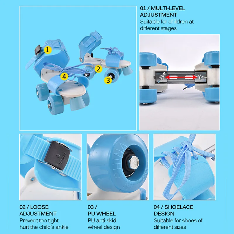 Детские роликовые коньки регулируемого размера, двойной ряд, 4 коле...