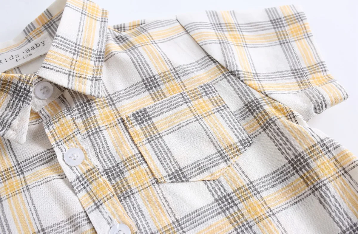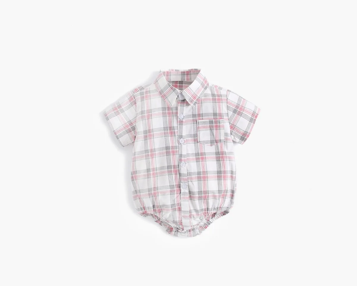 Новинка 2021 года; Летняя одежда для маленьких мальчиков; Боди для новорожденных; Повседневная одежда в клетку с короткими рукавами из чистого хлопка; Мягкая верхняя одежда; 4 цвета