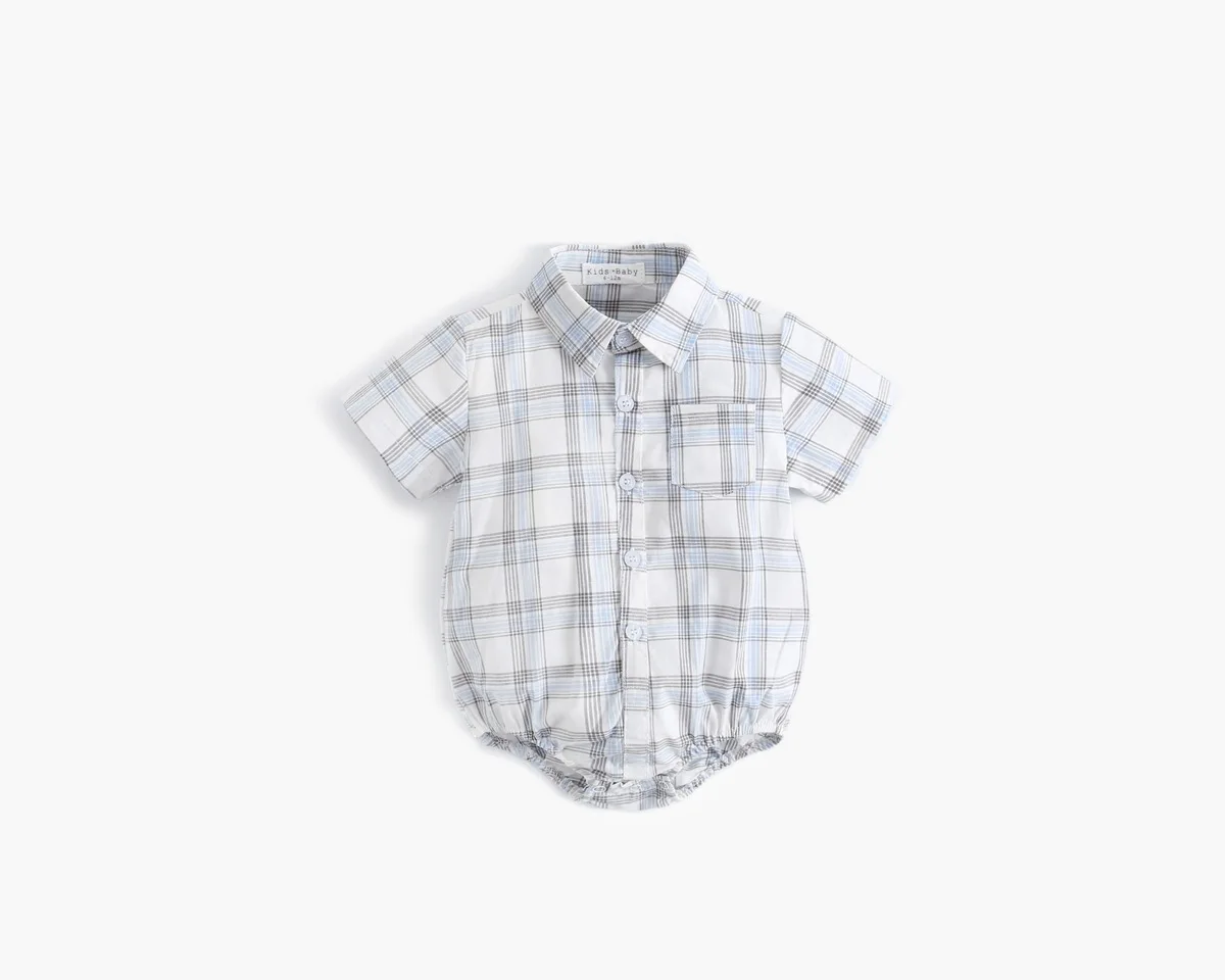 Комбинезон детский хлопковый, с коротким рукавом, в клетку
