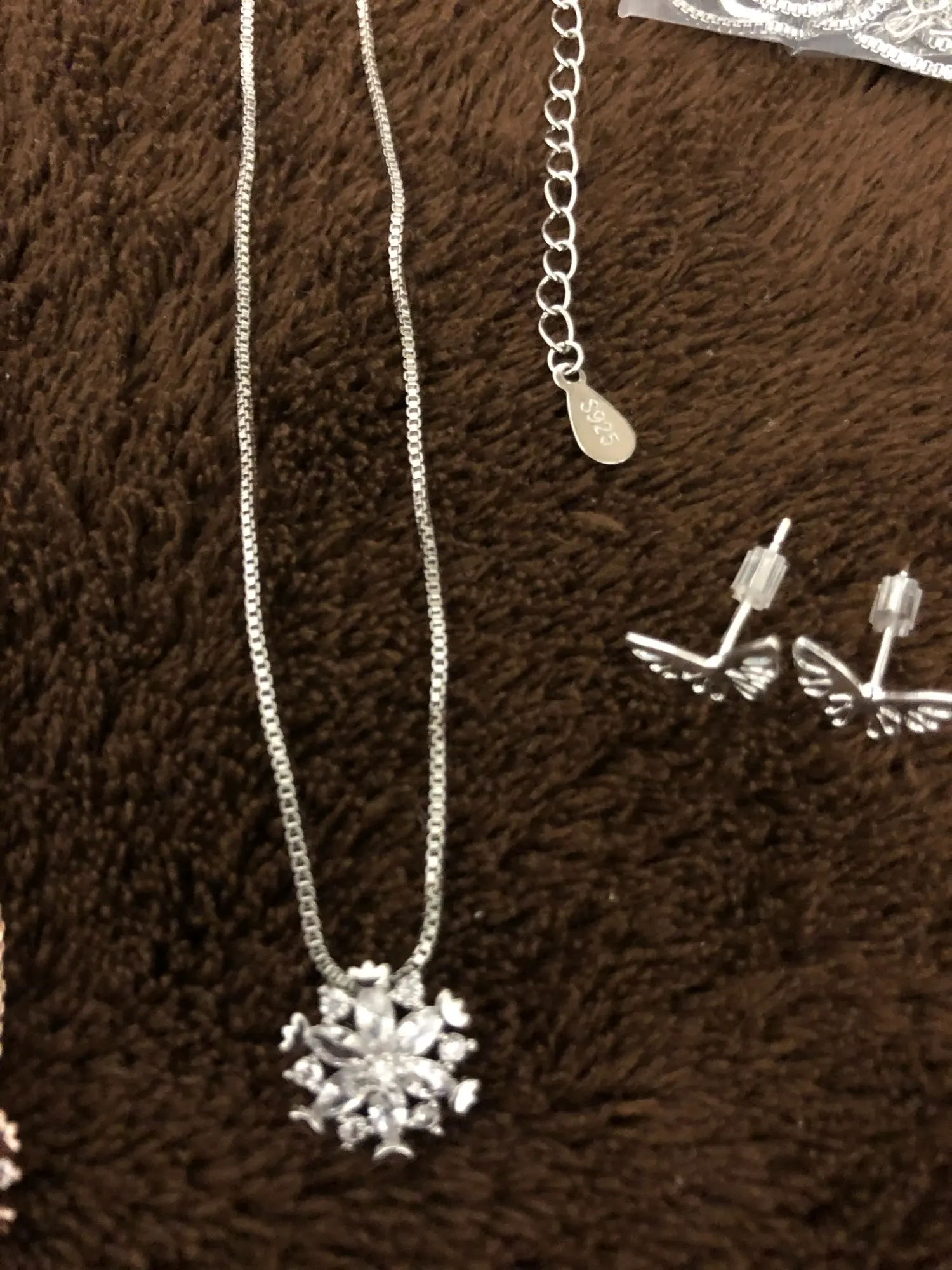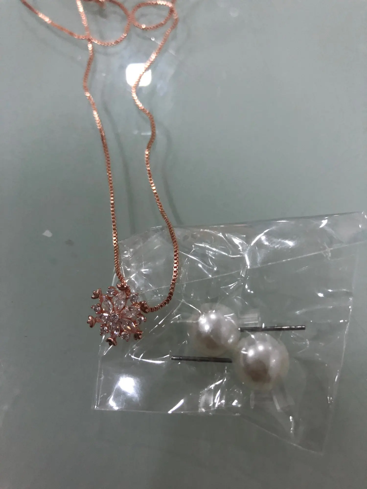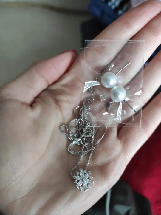Спасибо большое продавцу и Алиекспресс!! Нежнейшая серебряная цепочка с милой снежинкой. Цирконы сияют на свету. Также продавец сделал подарок - пусеты- жемчужины. Это также очень приятно. Буду носить с большим удовольствием. Рекомендую для покупки ⭐⭐⭐⭐⭐ . У продавца быстрая доставка- до двух недель.