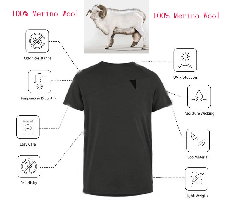 Мужская футболка из мериносовой шерсти, базовая футболка из 100% мериносовой шерсти, Мужская Уличная рубашка, дышащая, с защитой от запаха, размер S-XXL