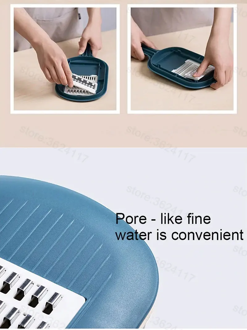 Товар полностью соответствует описанию. Но цвет не соответствует заказанному. Ножи острые. в комплекте 4 шт. но не хватает ножей помельче. крышка фиксируется не плотно. Но приспособится можно. Понравился двойной резервуар для натертых продуктов. удобно шинковать овощи. жидкость стекает. нет лишней влаги.