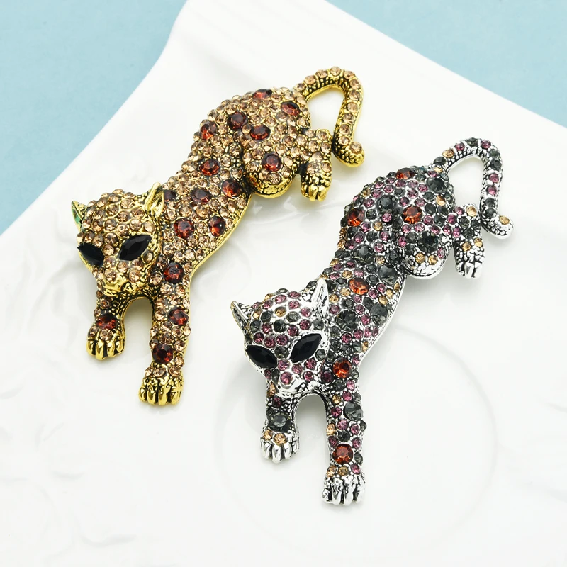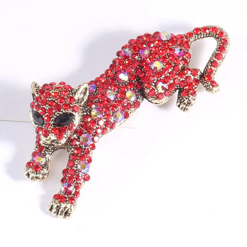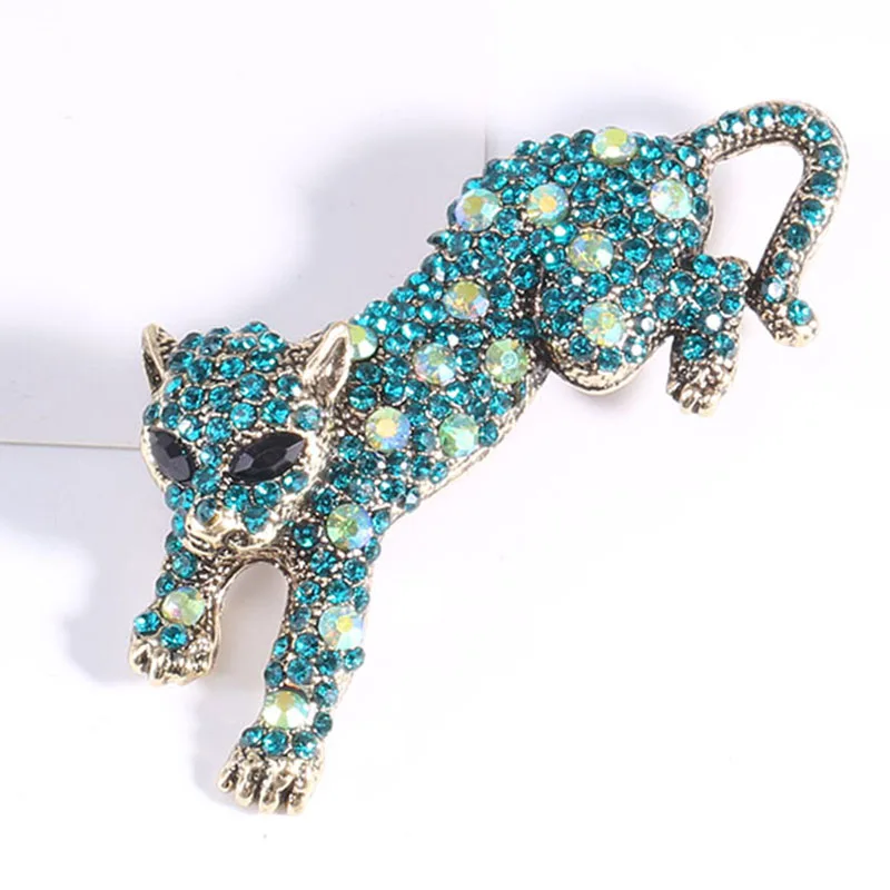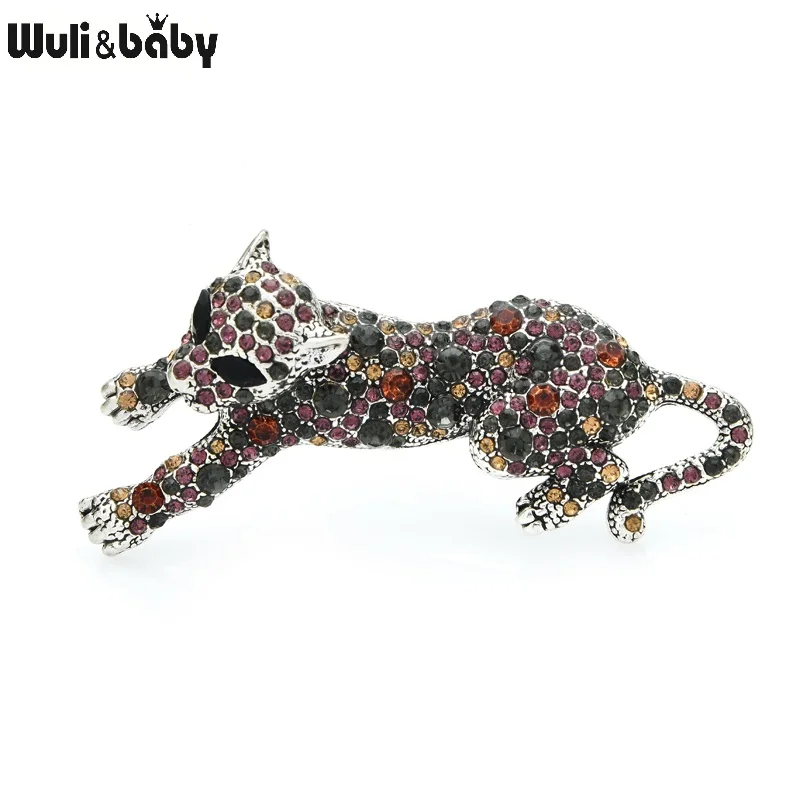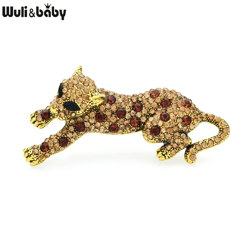 Wuli baby сверкающие стразы броши леопард для женщин мужчин синий красный леопард животное вечерние повседневные Броши Булавки подарки
