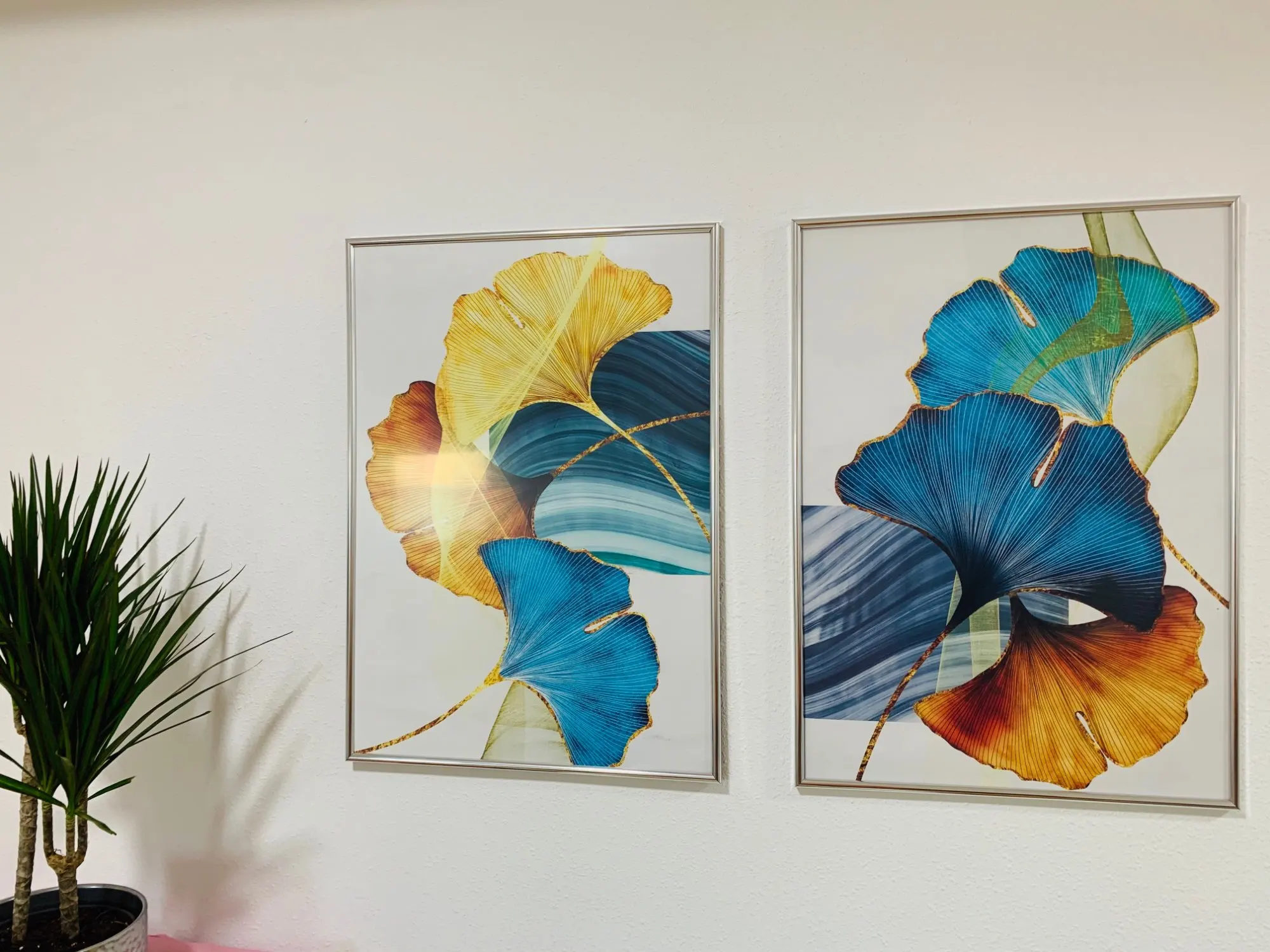 Абстрактный постер с изображением синего, зеленого, желтого, золотого растений, Листьев, скандинавский принт, настенное искусство, украшение для гостиной, картина современного искусства
