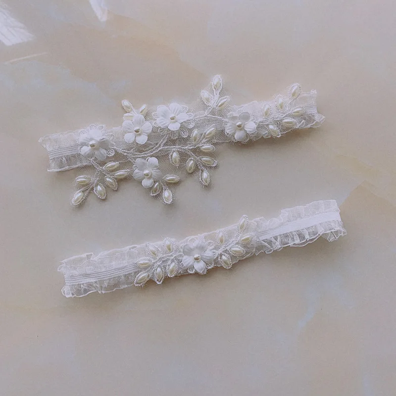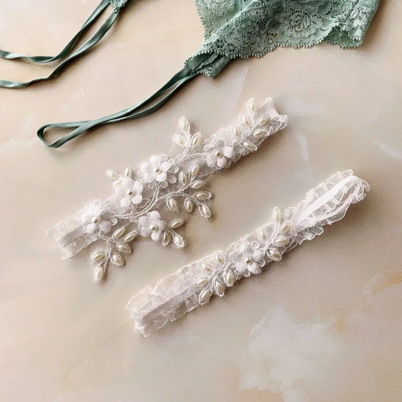 Подвязка женская свадебная с жемчугом, белые пикантные подвязки с цветочной вышивкой и бисером, кольцо для невесты на бедро, 1 комплект