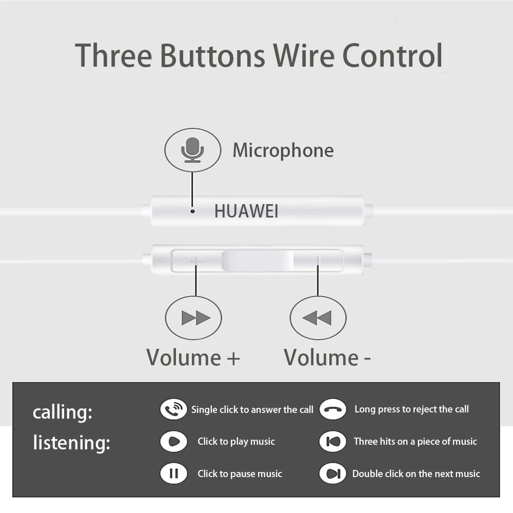 Оригинальные наушники Huawei AM 115, проводные наушники с регулировкой громкости и разъемом 3,5 мм, наушники-вкладыши для смартфонов HUAWEI, Xiaomi