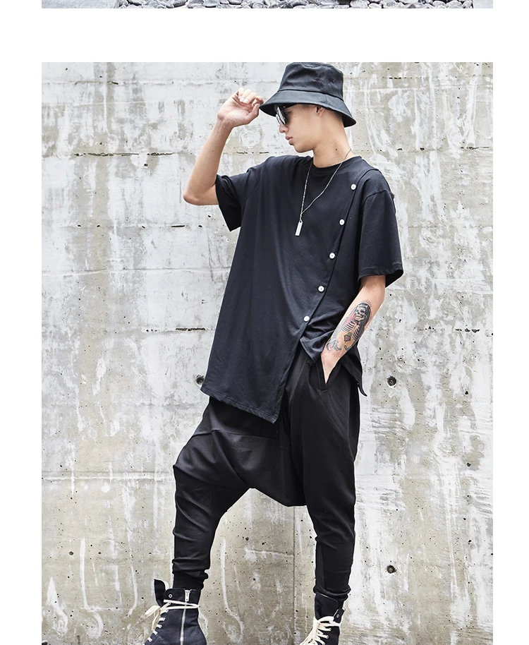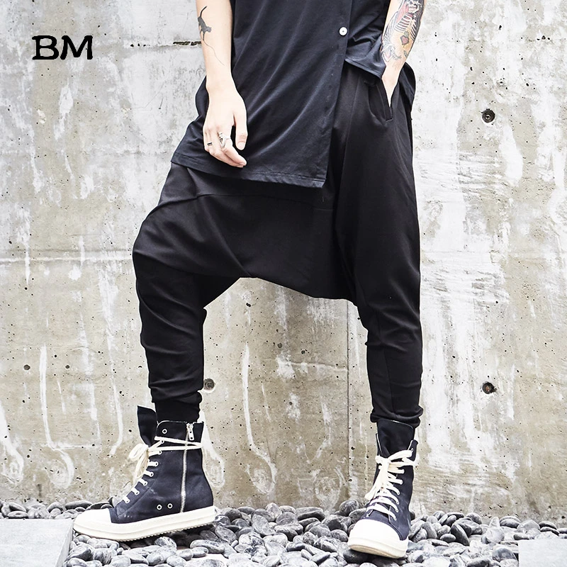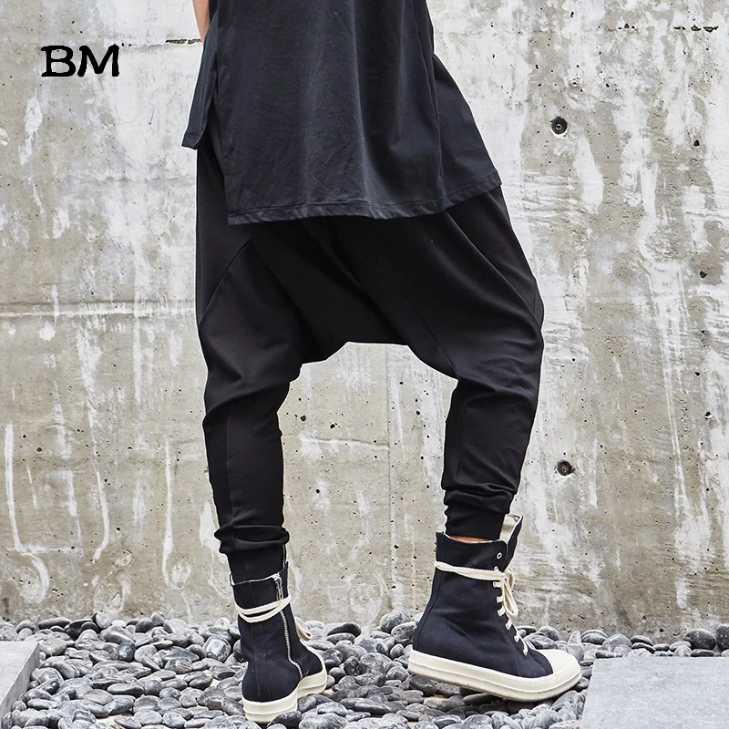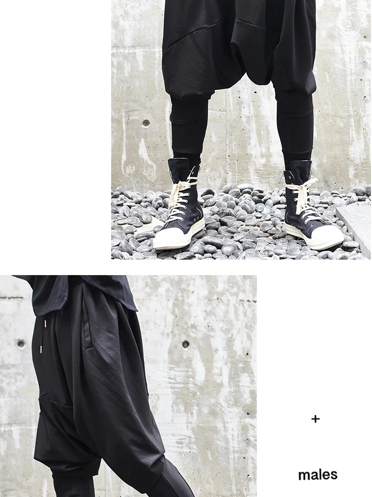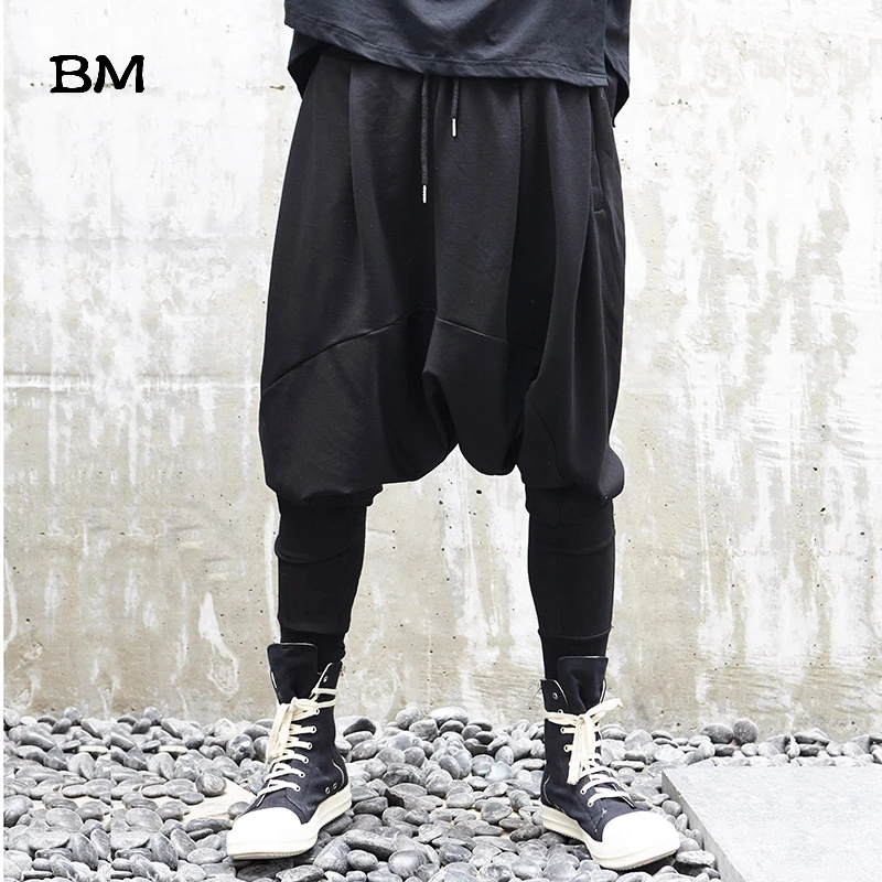 Мужские штаны с заниженной промежностью, повседневные, в японском стиле, свободные, в стиле хип-хоп, темно-черные, свободные брюки, в готическом стиле, штаны для бега