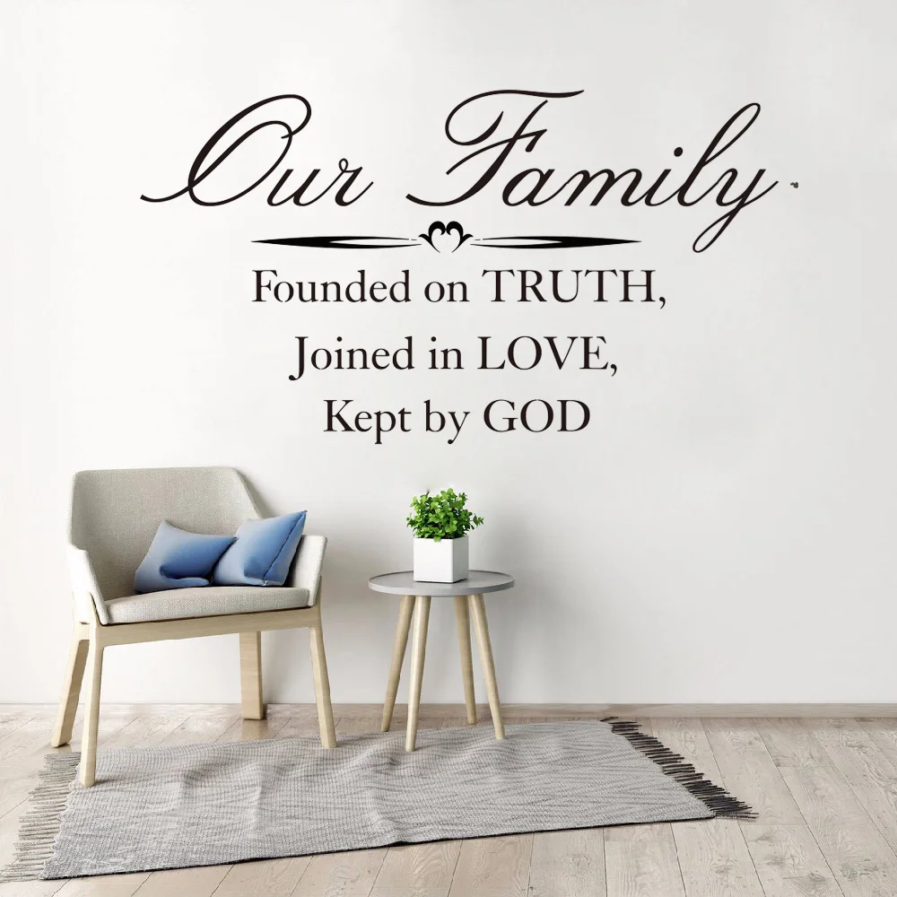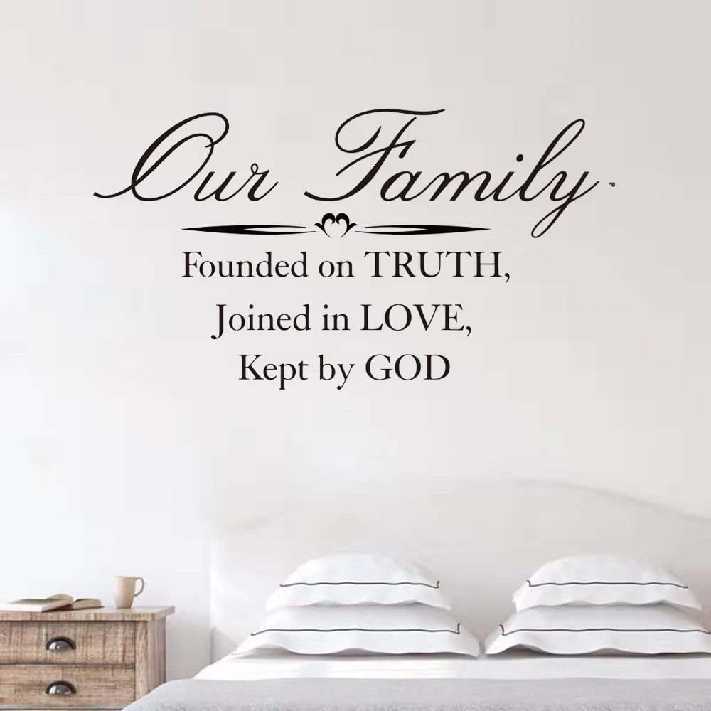 Наша семья основана на истине, соединена влюбленными, сохраненная Богом Библия, цитата, настенная наклейка, вдохновение, цитата, наклейка, виниловый Декор для дома
