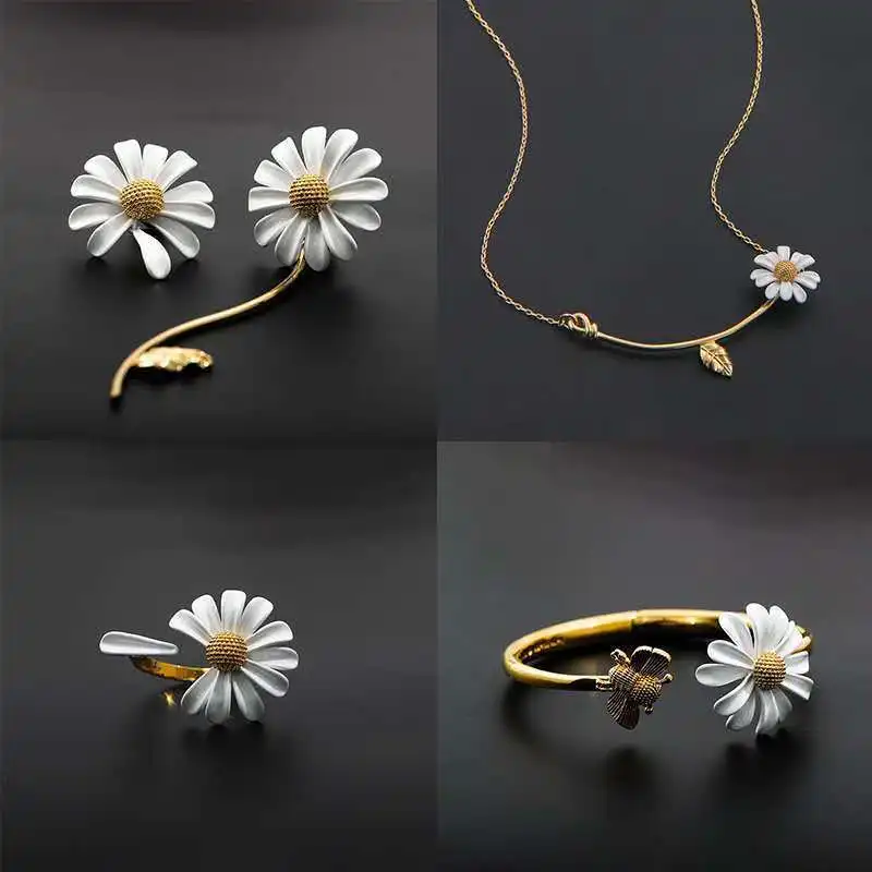 FIMAODZ новый дизайн маргаритки Ювелирные наборы модные ожерелье из подсолнечника серьги кольцо золотого цвета Элегантные Свадебные Ювелирные наборы для женщин