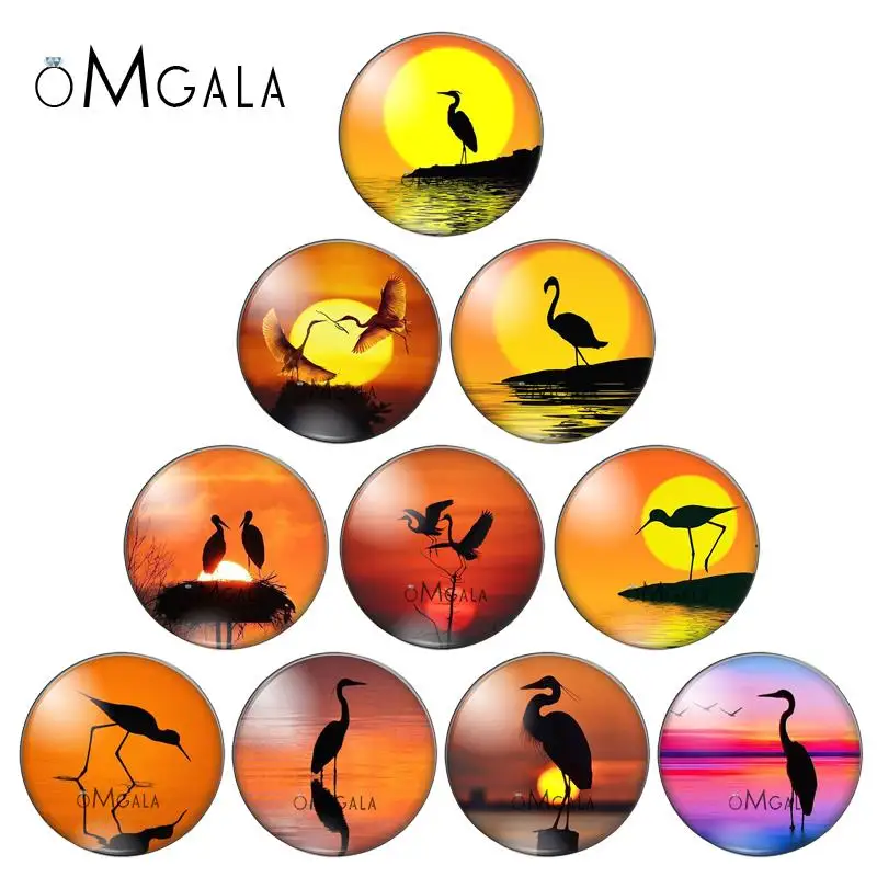 Новый узор в виде фламинго на закате, 10 шт., 10 мм, 10 мм, 12 мм, 14 мм, 16 мм, 18 мм, 20 мм, Круглое стекло, кабошон, демонстрация, плоская задняя часть