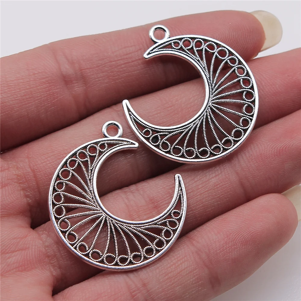 WYSIWYG 4 шт 30x34 мм античные серебряные цвета полые полумесяц Подвески для изготовления ювелирных изделий Diy ювелирных изделий
