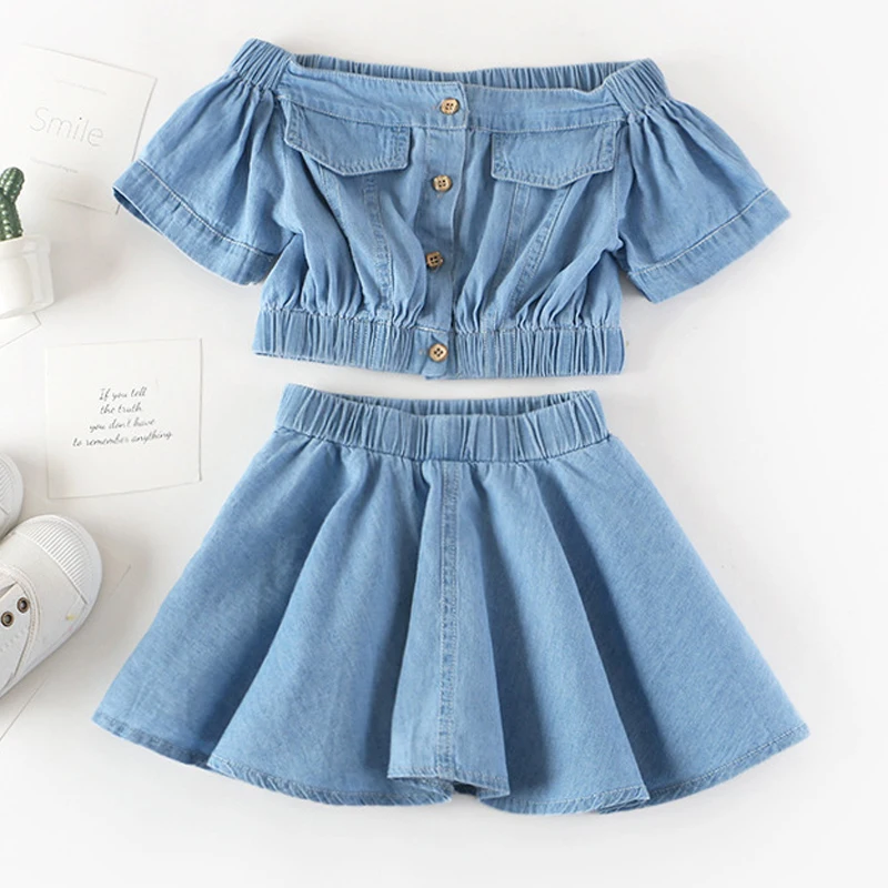 2020 летние комплекты одежды для девочек модный джинсовый топ с рукавами + шорты комплект детской одежды из 2 предметов детская одежда