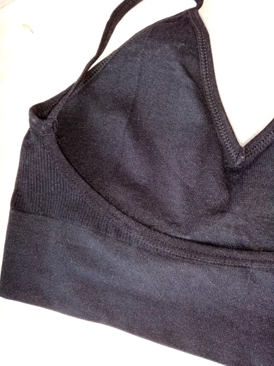 Фото не очень но делать другие крайне лень. Топ нравится однозначно. Единственное- странное расположение лямок сзади не очень удобно но думаю привыкну. Пришито все ровно и аккуратно! Качество хорошее. Закажу себе ещё таких попозже. Чашка удобная, плотная. Спасибо