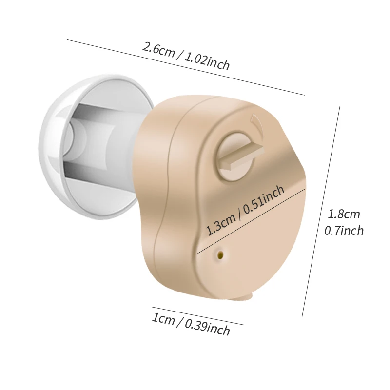 Особенности -- Максимальное усиление звука: 30 дБ, подходит для легкой и умеренной потери слуха (справочная карта потери слуха) -- Простое управление одной кнопкой: легко использовать -Биомиметический дизайн: предназначен для слабослышащих, более подходящих для ушных каналов. Не ощущайте боли даже при длительном ношении. -- Длительное время работы: одна батарея A312 может работать около 1 дня. Удобно и практично. -- Если ушной купол не полностью заполняется в ушной канал или утечки воздуха в ушном куполе, что вызывает раздражающий свист. Мы предоставляем беруши 3 разных размера, чтобы уменьшить вой и шум. Параметры Максимальный выход звука: ≥ 120 дБ Максимальное усиление звука: ≥ 30 дБ Гармоническое искажение волны: f<1000 Гц ≤ 10%,f>1000 Гц ≤ 4% Частотный диапазон: 300 ~ 4000 Гц Входной шум: ≤ 540 дБ Батарея: батарея AG3 Рабочее напряжение: 1,5 В постоянного тока Рабочий ток: ≤ 4 мА Цвет: как показано на рисунке Размер изделия: 1,9x1,4x1,6 см Посылка: 8,5x5,5x3,5 см