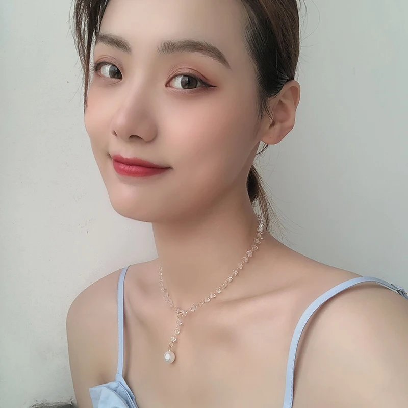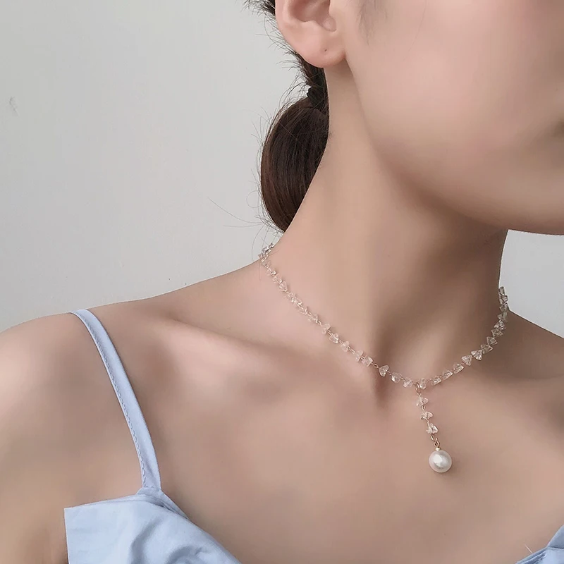 Ожерелье женское из прозрачного стекла с подвеской из одного искусственного жемчуга