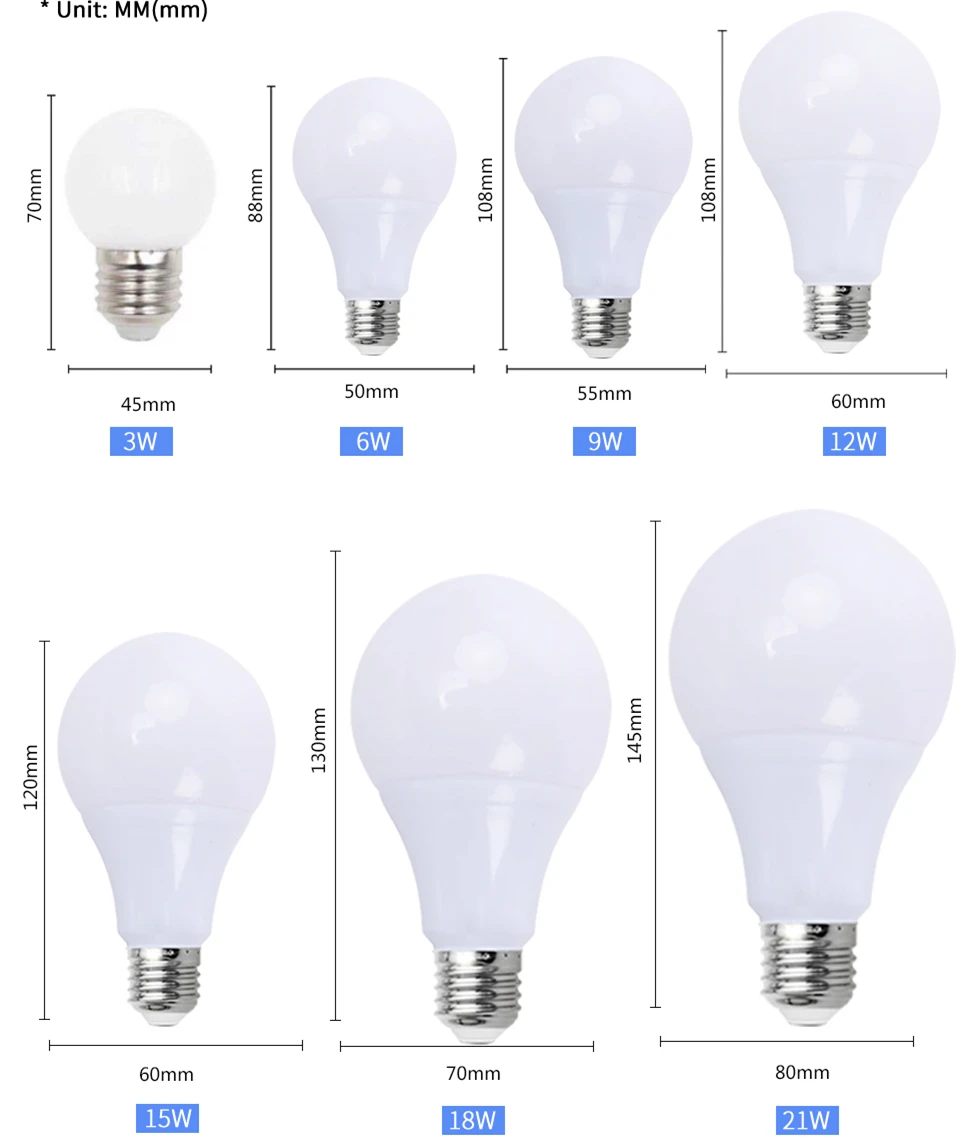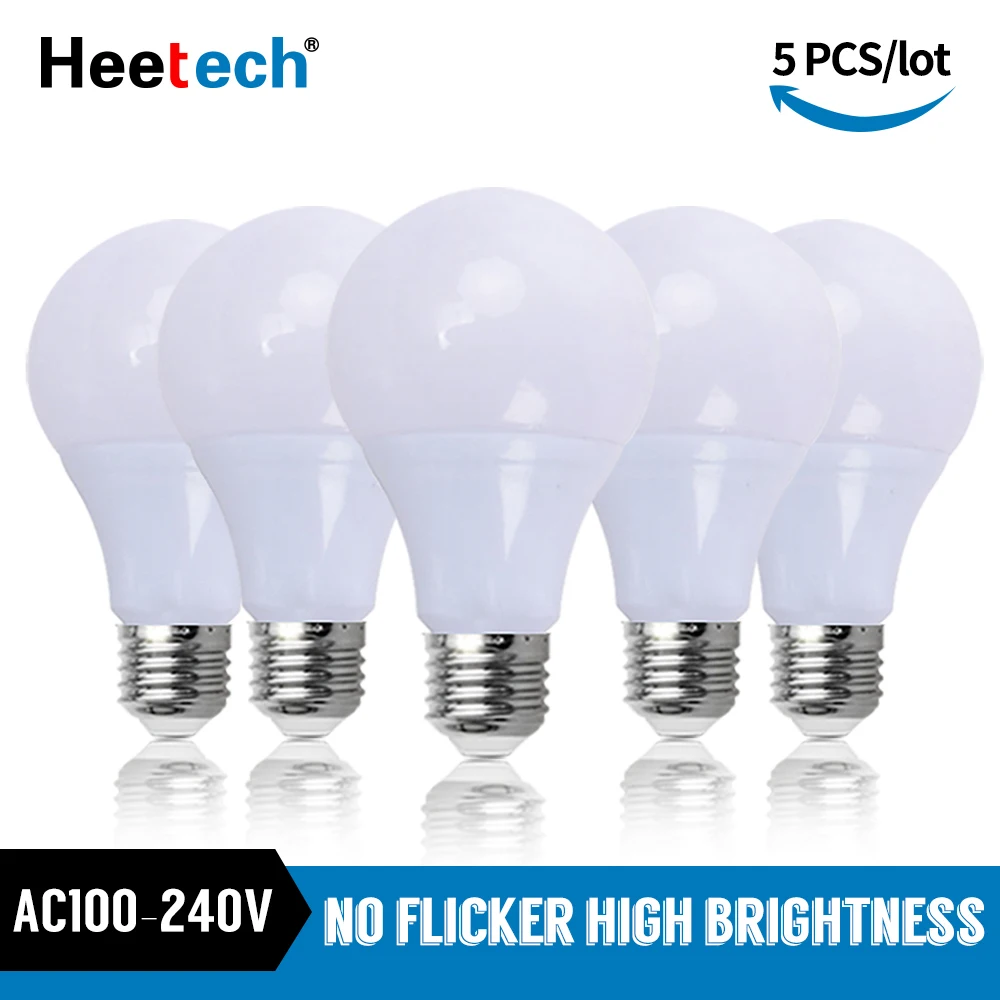 Светодиодные лампы E27, 5 шт.лот, 3 Вт, 6 Вт, 9 Вт, 12 Вт, 15 Вт, 18 Вт, 21 Вт, лампы, AC 110 В, 220 В, 240 в, светодиодная лампа, прожектор, Холодныйтеплый белый свет