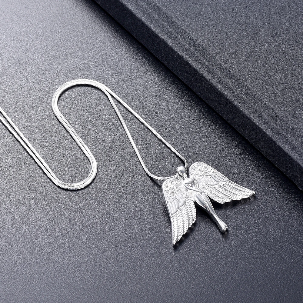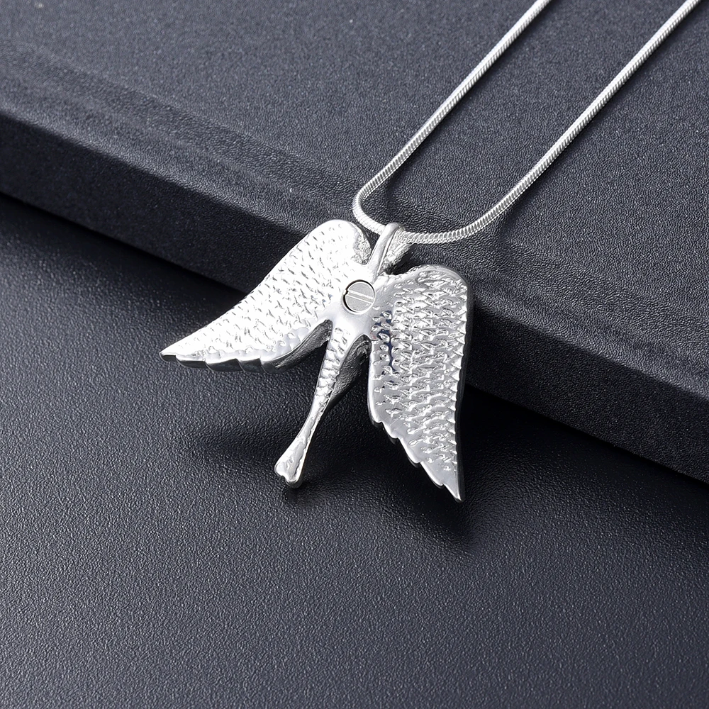 X082 белый прозрачный кристалл инкрустация Крыло ангела кремации ожерелье женщин Подарочный медальон с отверстием держать близких пепел в безопасности