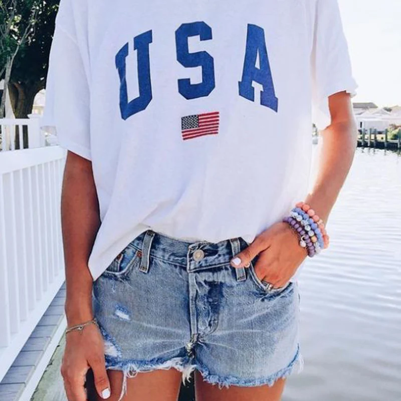 Футболка женская с буквенным принтом США, Свободный Повседневный винтажный топ с коротким рукавом, шикарная уличная одежда в стиле Харадзюку, на лето