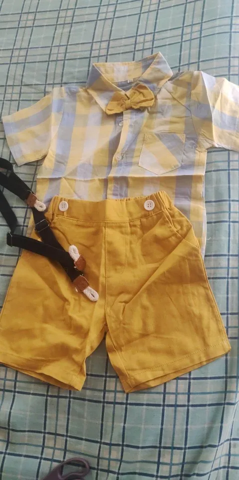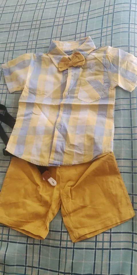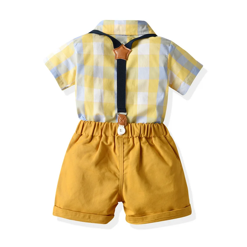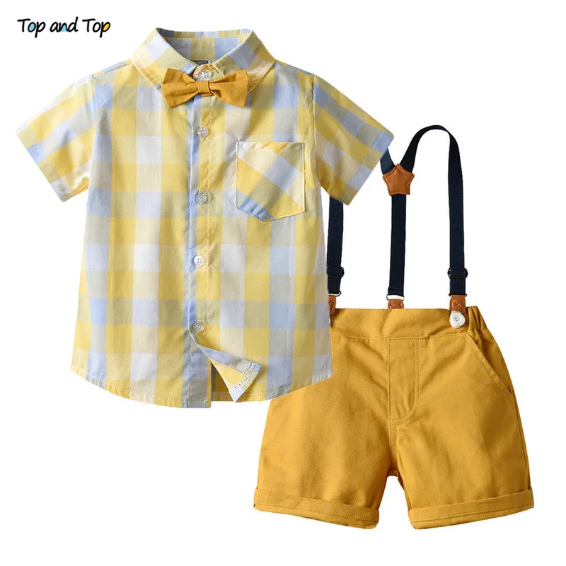Топ и топ, новинка, комплекты одежды для маленьких мальчиков, джентльменов, рубашка с коротким рукавом и юбка-топ + комбинезон, модель 12M-5 лет