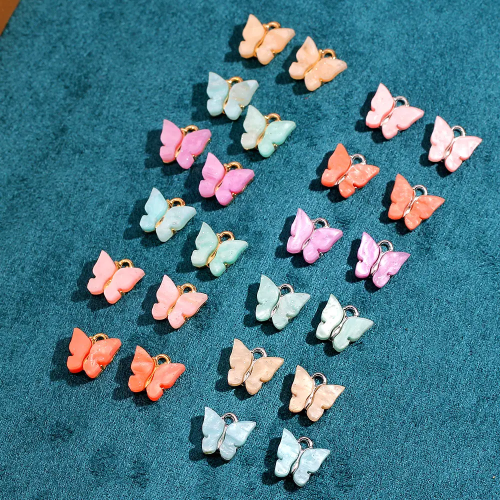 10 шт.лот, модные акриловые подвески Flatfoosie в форме бабочки из сплава, милые украшения ручной работы для ожерелий, браслетов, сережек