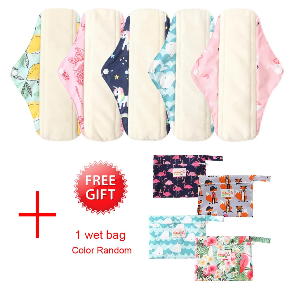 Бесплатная доставка 5 шт м многоразовые прокладки с 1 влажной сумкой водонепроницаемые тканевые гигиенические прокладки менструальные прокладки с органическим бамбуковым внутренним покрытием