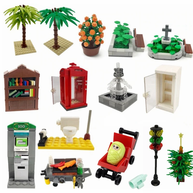 Городской MOC серии строительные блоки игрушки для детей Туалет Телефон Creactor мальчик ATM банк цветы кровать города Дети Развивающие игрушки