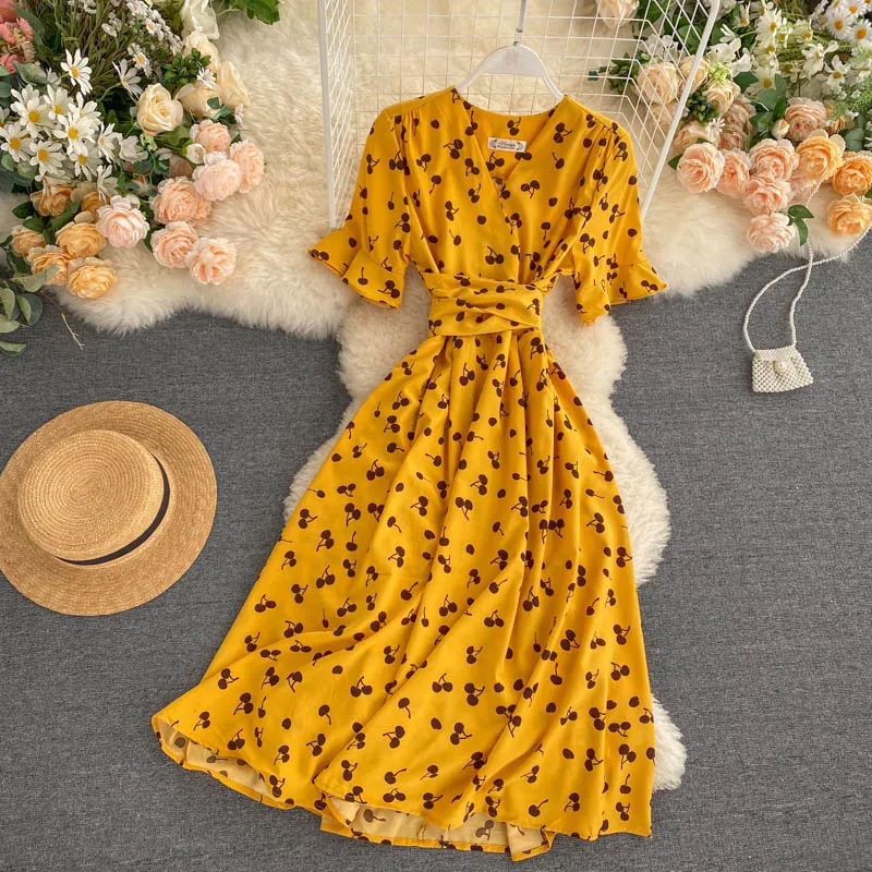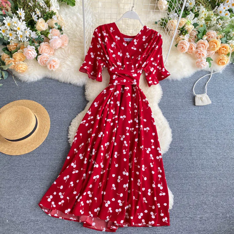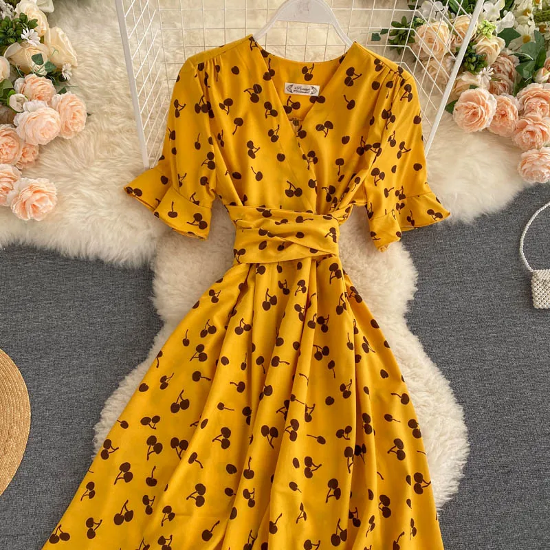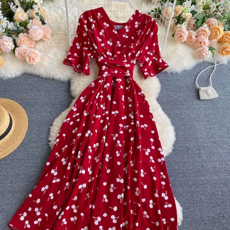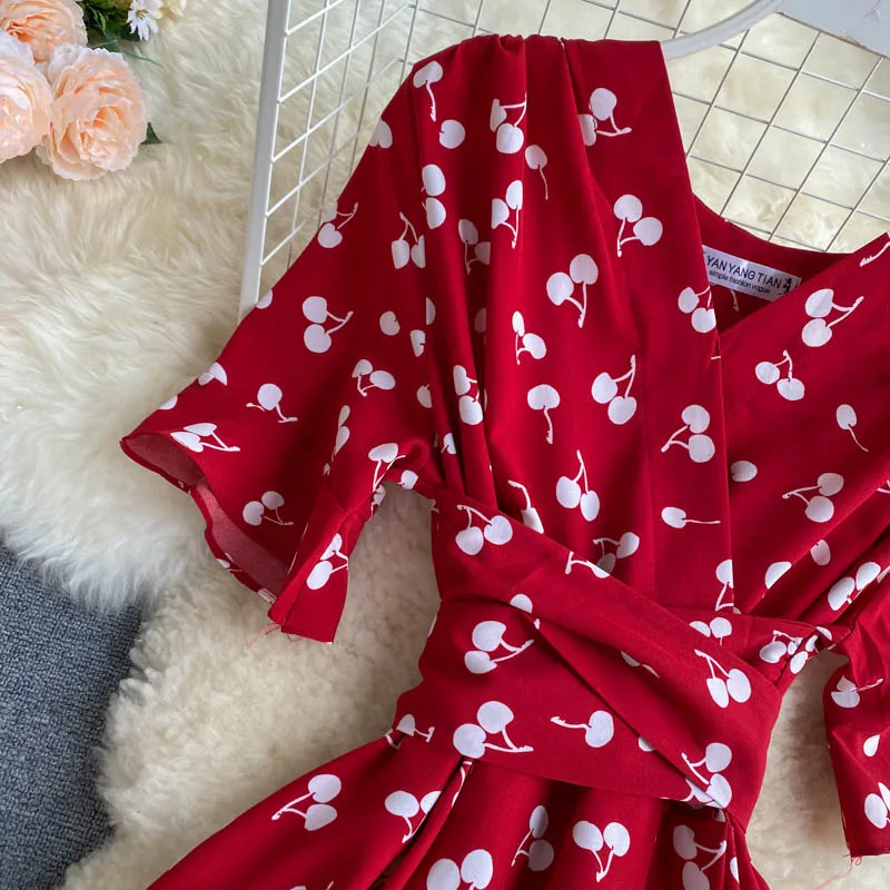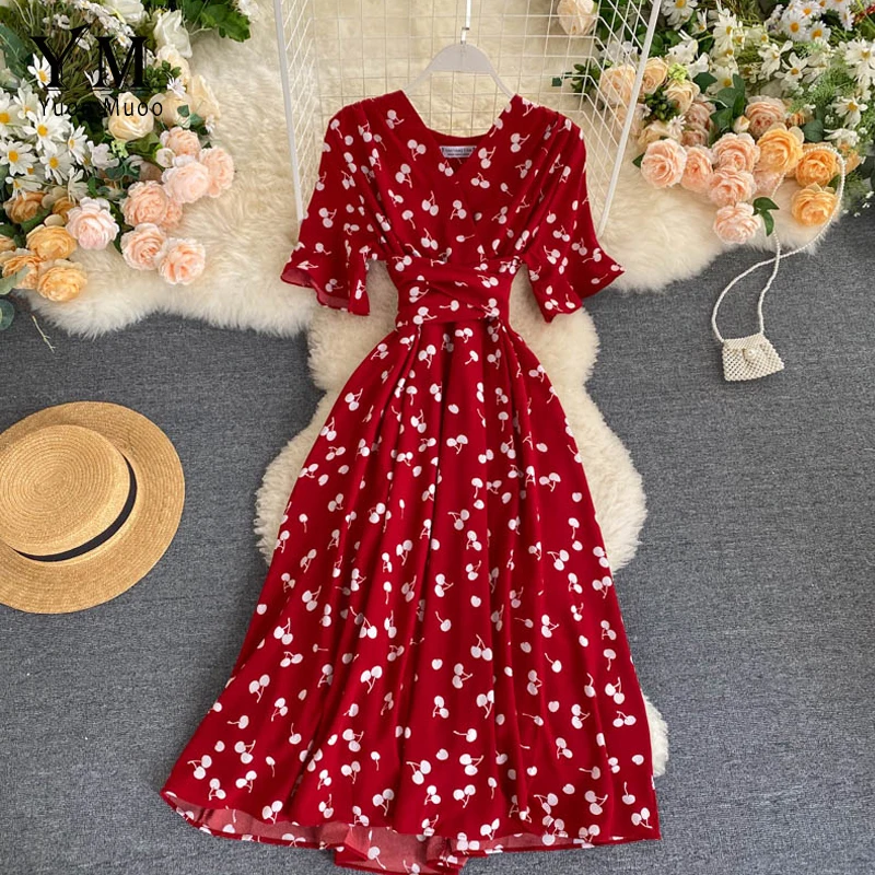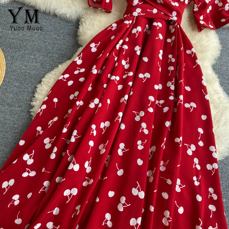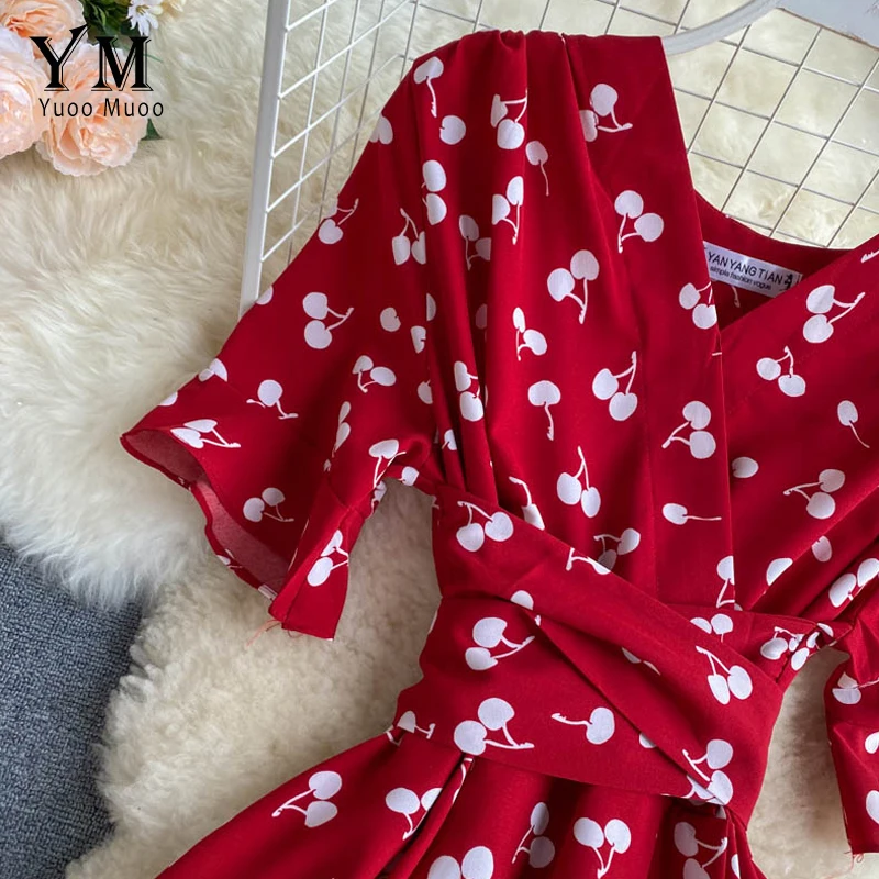 Вечернее платье YuooMuoo, винтажное, с перекрестной завязкой на талии, с глубоким V-образным вырезом, с расклешенным рукавом, с принтом, элегантное, повседневное, летнее, 2020