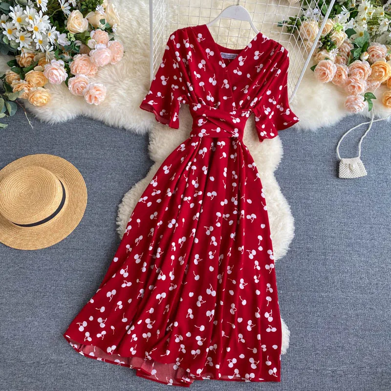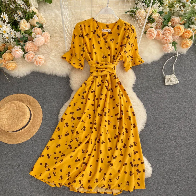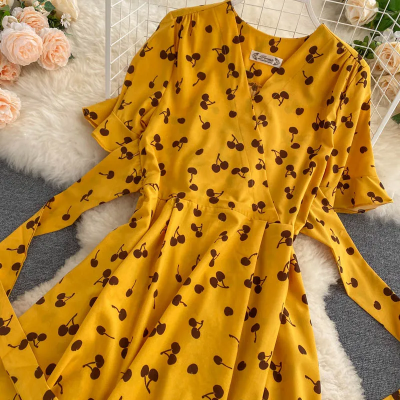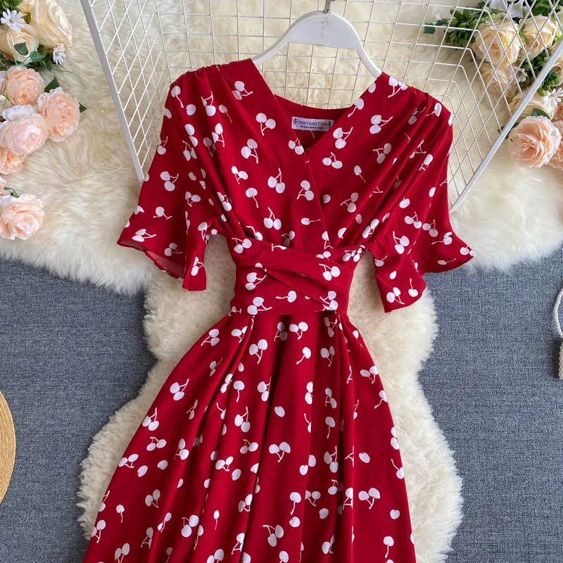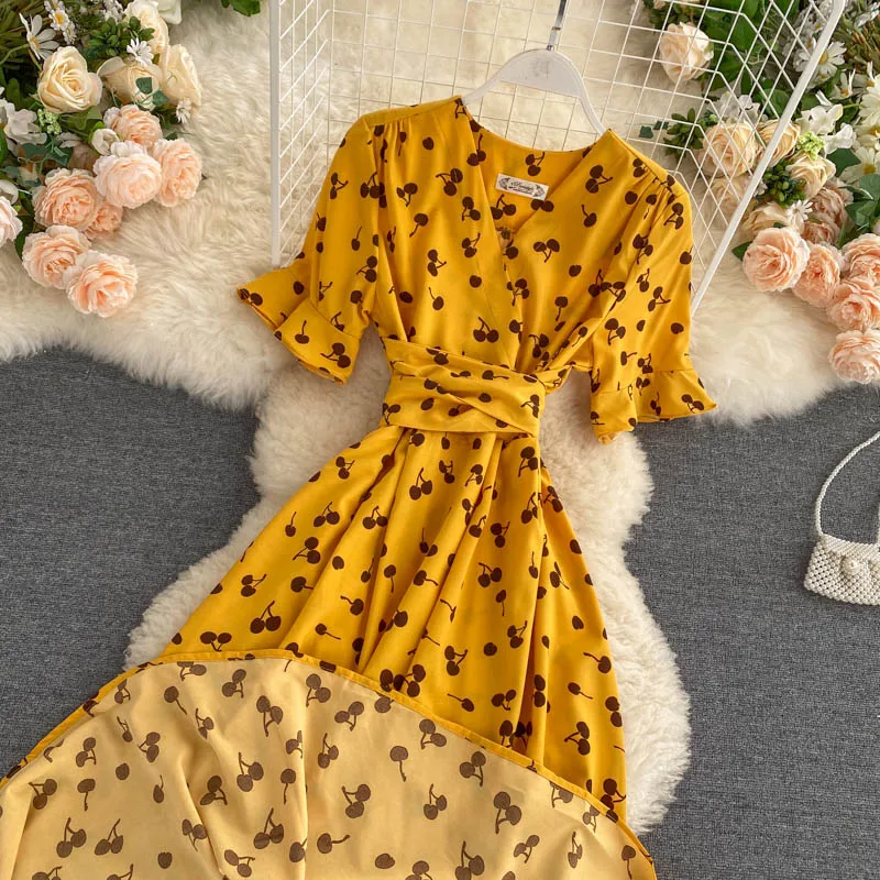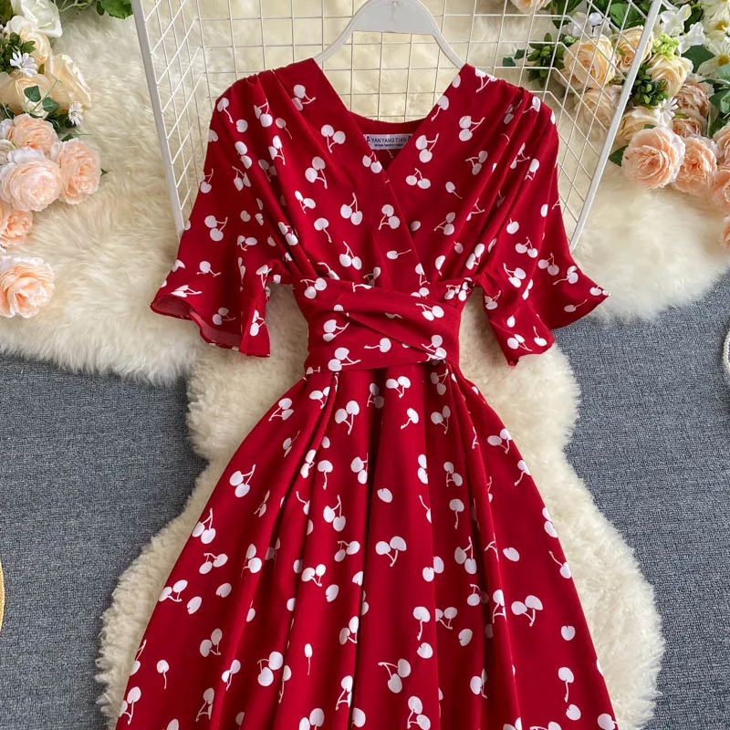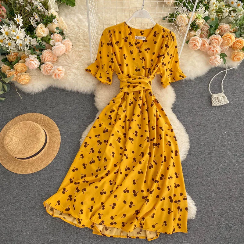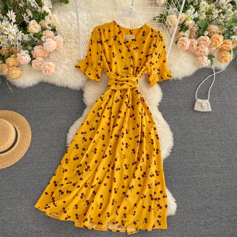 Вечернее платье YuooMuoo, винтажное, с перекрестной завязкой на талии, с глубоким V-образным вырезом, с расклешенным рукавом, с принтом, элегантное, повседневное, летнее, 2020