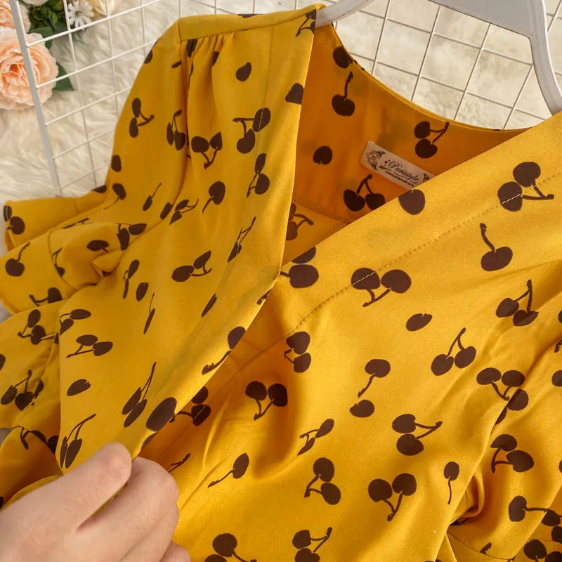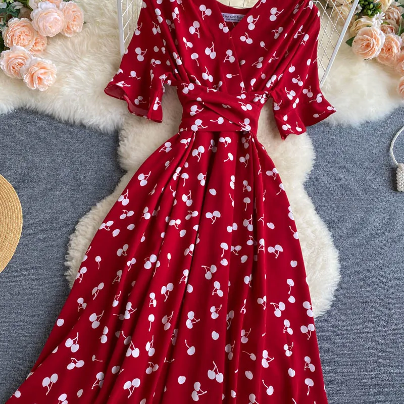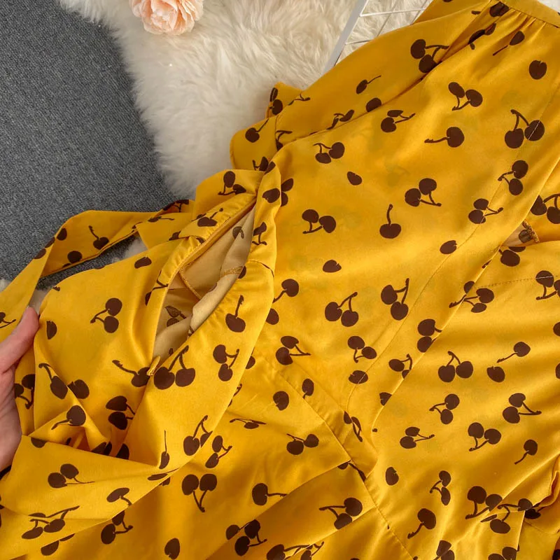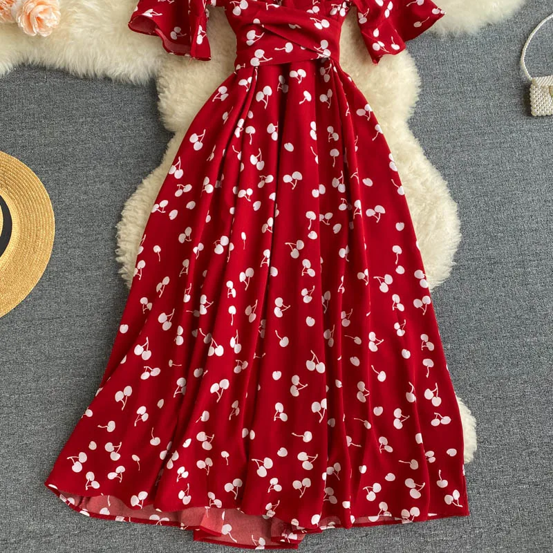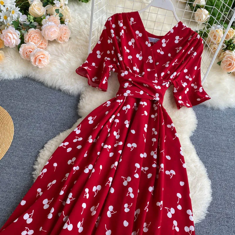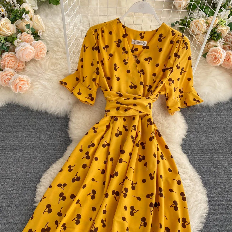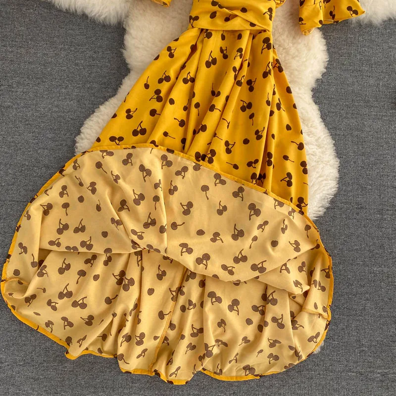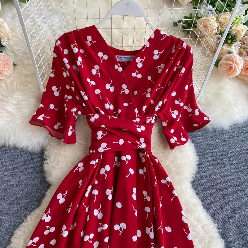 Вечернее платье YuooMuoo, винтажное, с перекрестной завязкой на талии, с глубоким V-образным вырезом, с расклешенным рукавом, с принтом, элегантное, повседневное, летнее, 2020