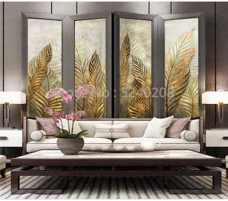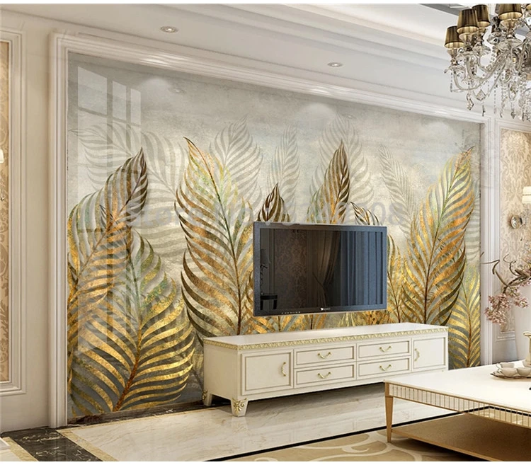 Фотообои, современное искусство, 3D, золотые листья, настенные самоклеящиеся водонепроницаемые наклейки на стену для гостиной, дивана, спальни, дома