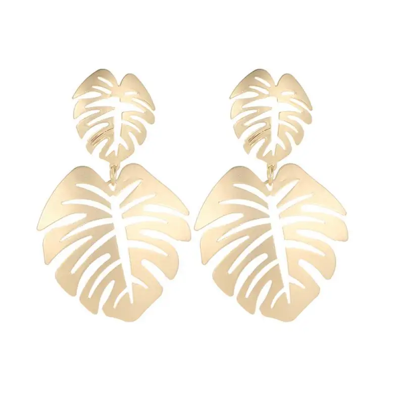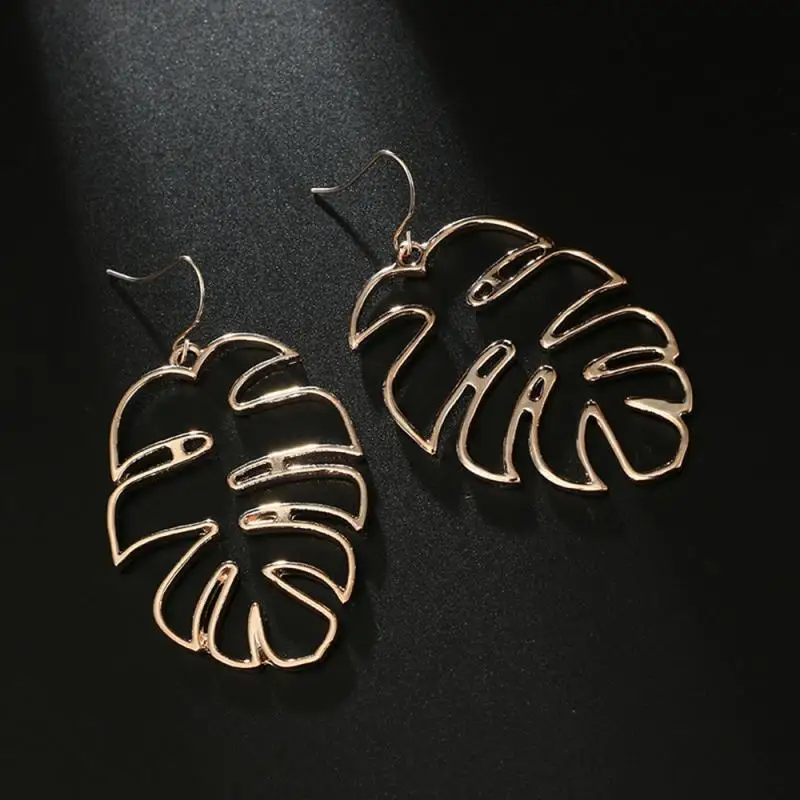 Лидер продаж, Винтажные серьги в виде листьев, богемные длинные, золотистые, серебристые, большие, пустотелые, висячие, дизайнерские женские ювелирные изделия