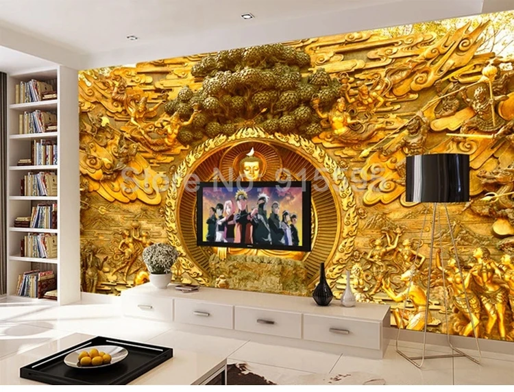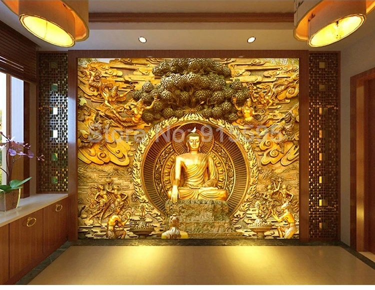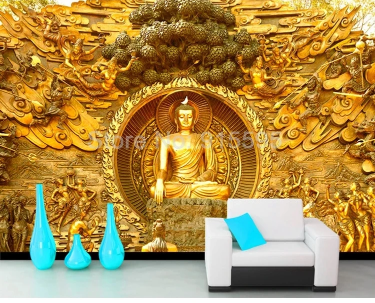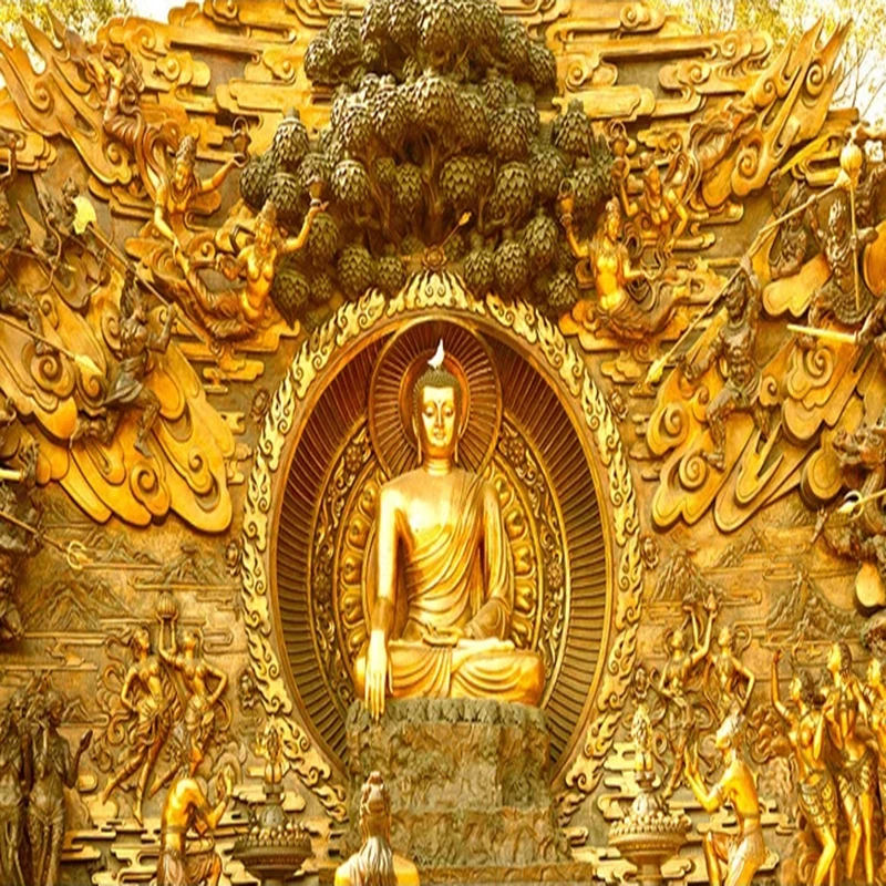 3D стерео обои, Золотая Будда, буддийская Храмовая роспись, на зака...