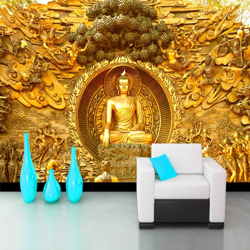 Пользовательские 3D фотообои золотая статуя Будды художественная ро...