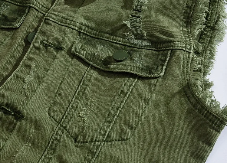 Джинсовый жилет мужской армейского зеленого цвета, рваный жилет из ...