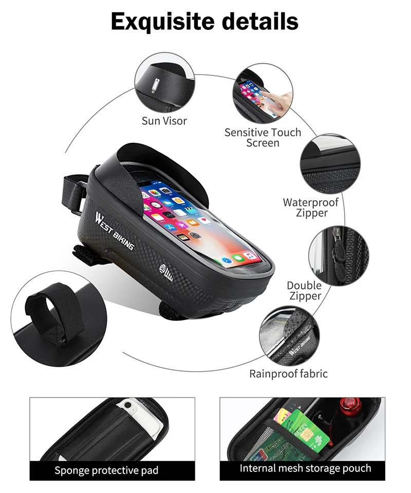 Сумка для телефона, для горного велосипеда, 6-WEST BIKING дюйма, с сенсорным экраном, водонепроницаемая, 7,2