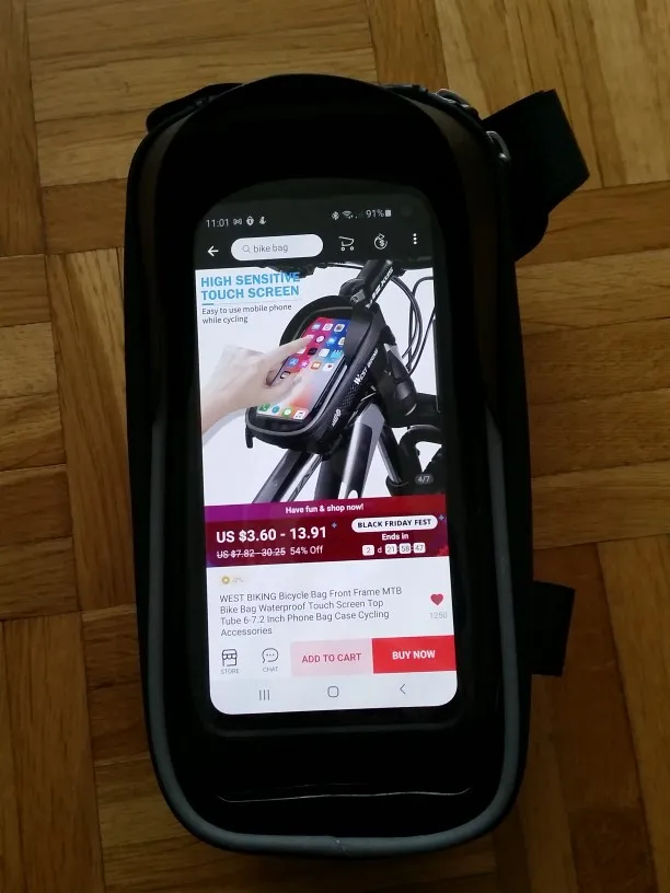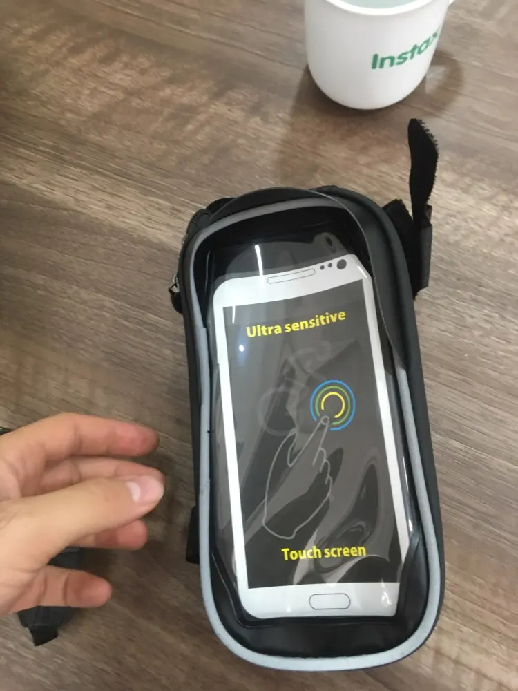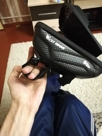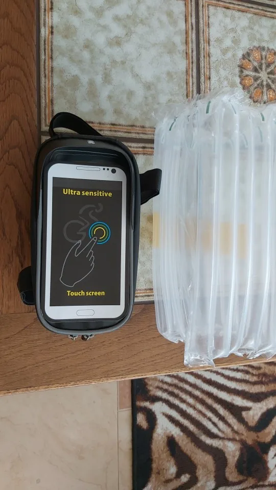 Получил сумочку меньше чем через неделю после заказа. Привез курьер прямо домой. Сумка хорошая. Довольно вместительная. Отсек для телефона отделен прозрачной пленкой, отлично передающей прикосновения на экран под ней. Вот только экранный датчик отпечатков пальцев через нее не работает. Подойдет для телефонов довольно больших размеров. Лямки крепления на липучках и имеют хороший диапазон регулировок. Подойдет на рамы любой толщины. К сожалению покататься ввиду плохой погоды с ней не удастся до следующего сезона, поэтому проверить как она держится в движении пока не могу. Но думаю все будет приемлемо, т.к. одно из креплений цепляется за рулевую ось - во всяком случае переворачиваться вверх дном точно не будет.