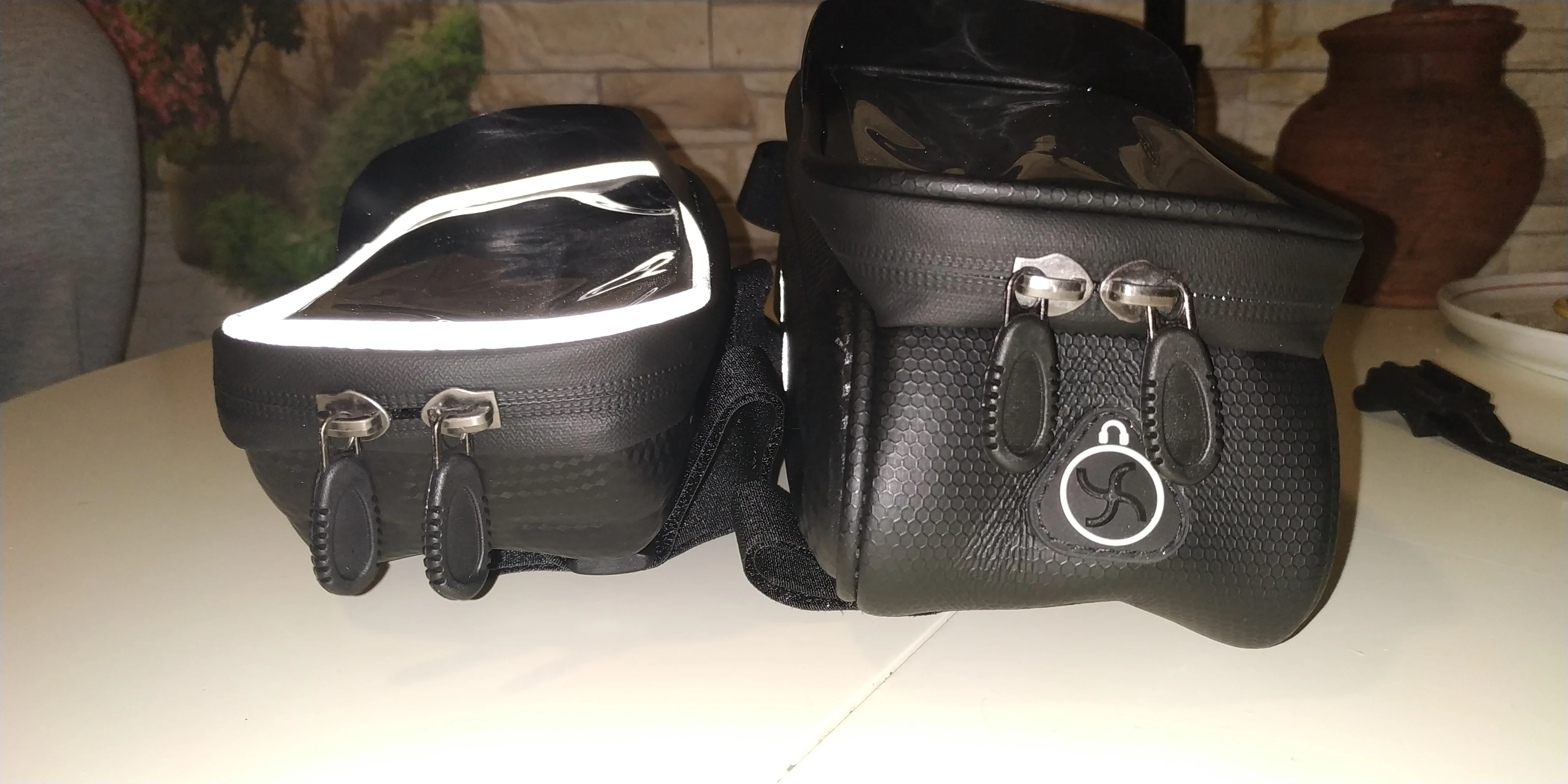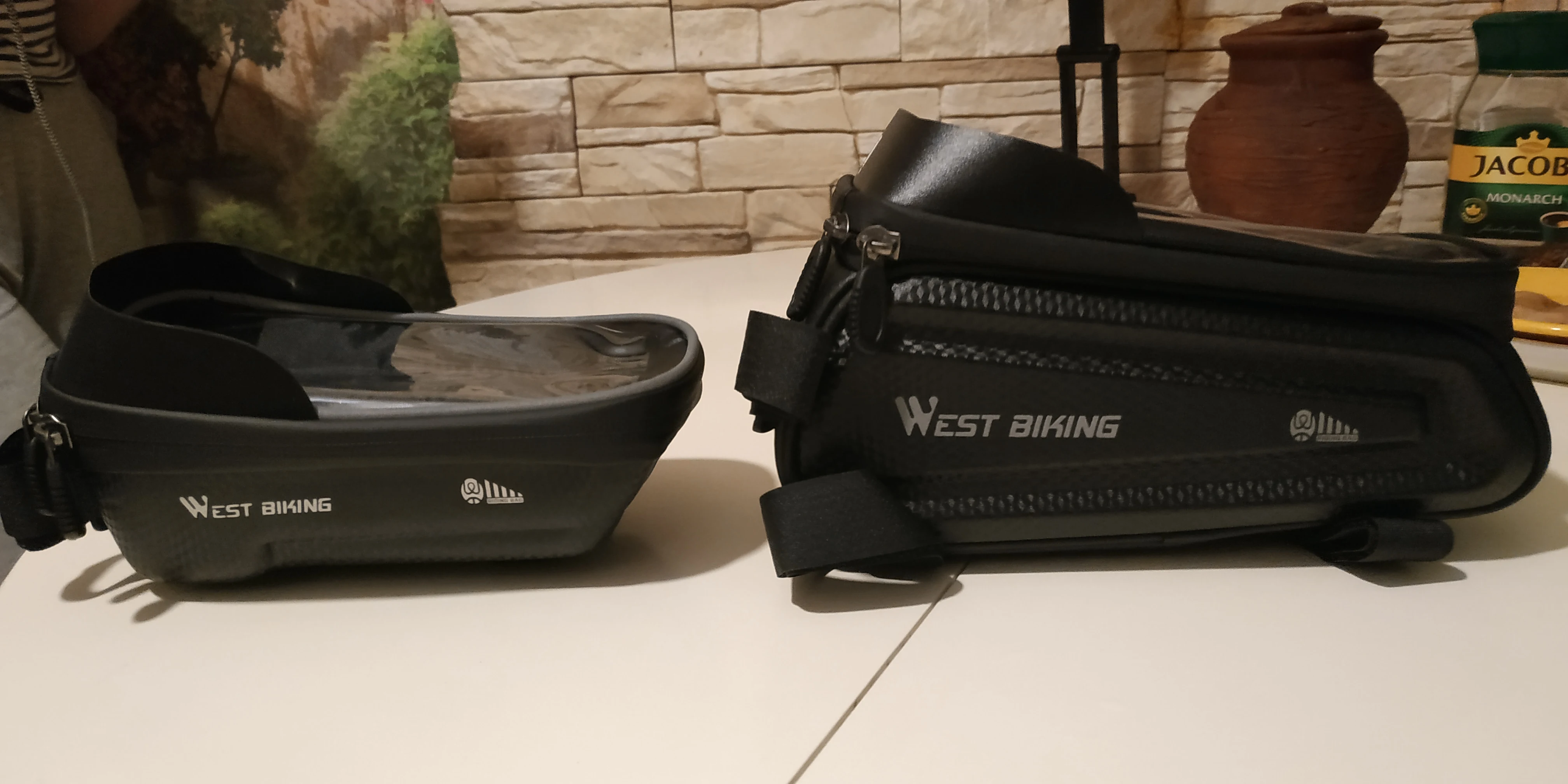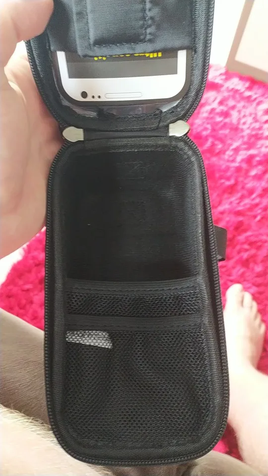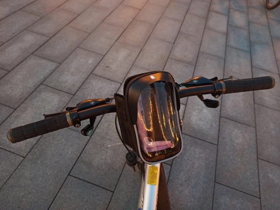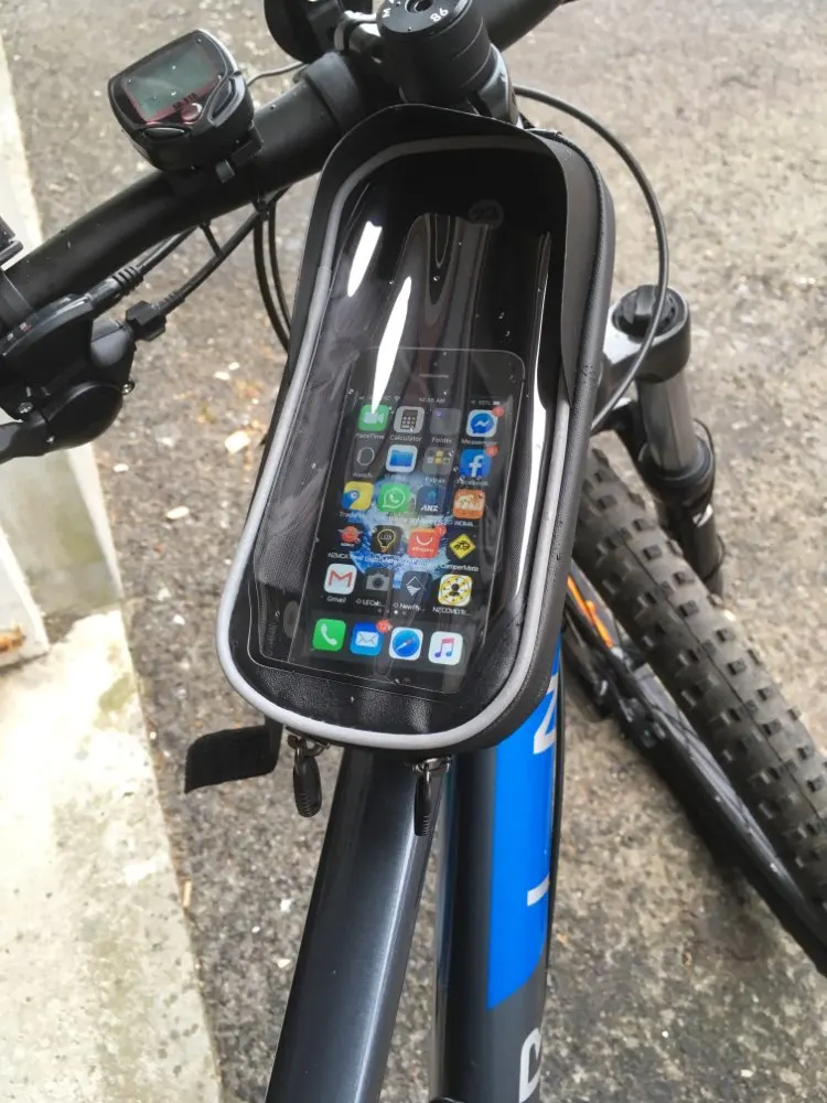 Очень крутая штука. Удобно следить за навигатором - телефон перед глазами. Redmi 8pro вошёл со свистом. Телефон хорошо управляем. Снизу выхода для наушников нет, но использовать проводные наушники, тянущиеся от велосипеда, - так себе идея. Кофр жёсткий, непромокаемый (проверено), замки работают отлично. Появилась необходимость заказать кофр на велосипеды всех членов семьи. С продавцом не общалась.