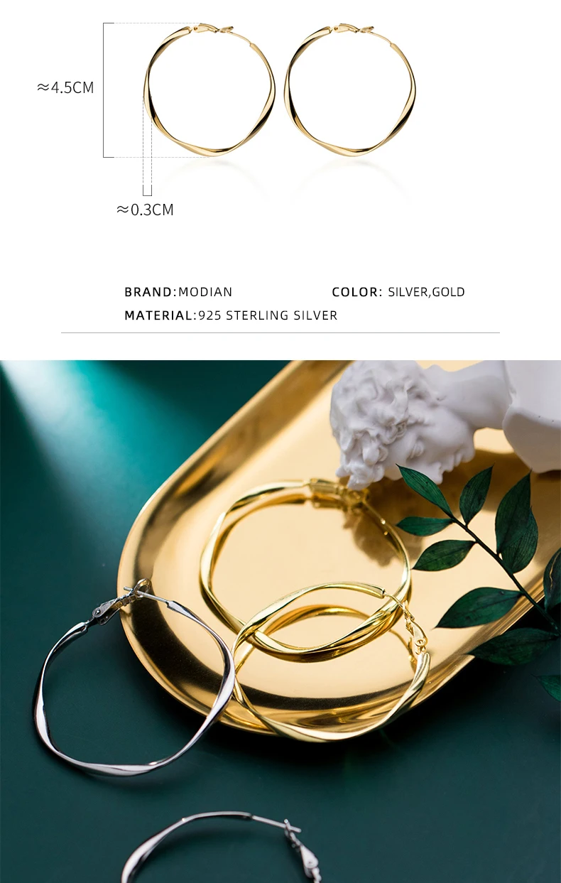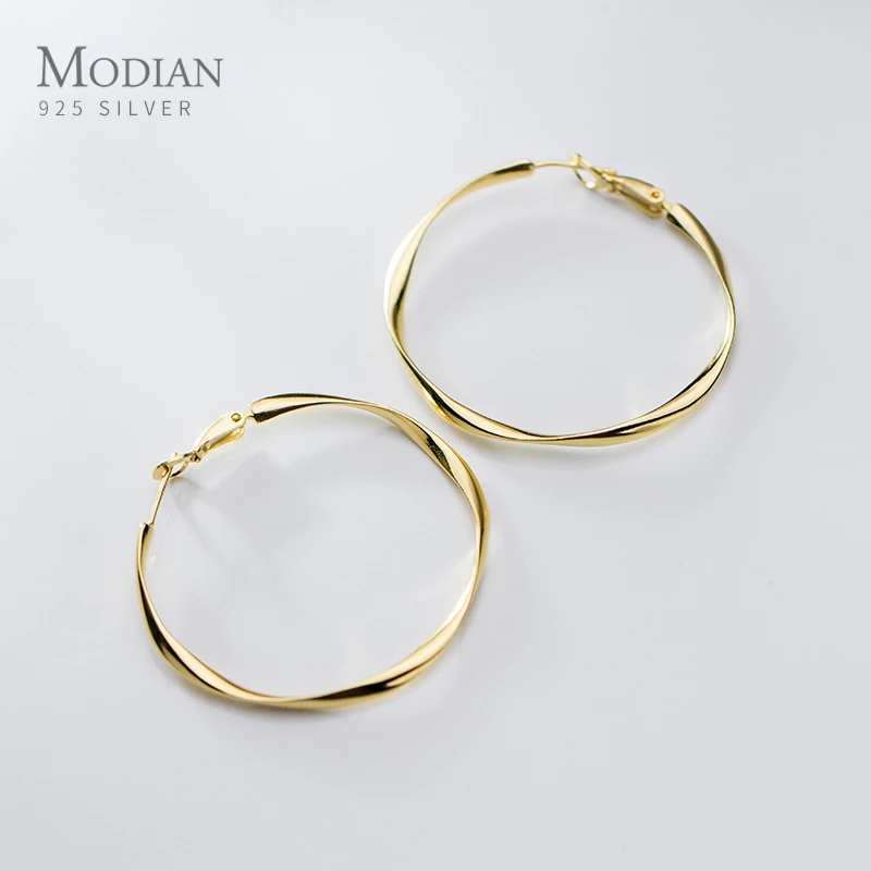 Женские классические серьги MODIAN Hyperbole, серьги круглой формы из настоящего большие серьги кольца 925 пробы, ювелирные украшения, 2020